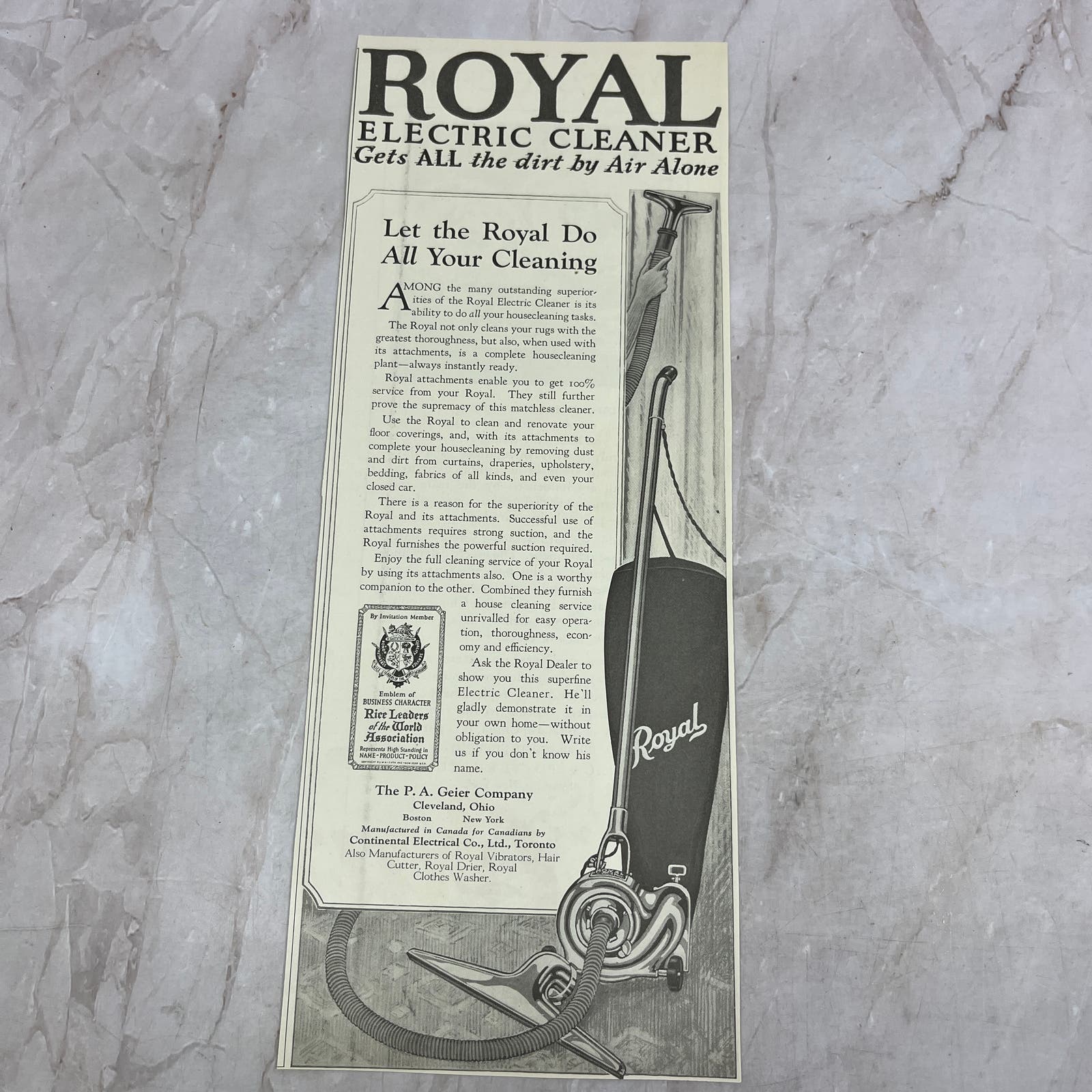 Royal Electric Cleaner Vacuum P.A. Geeier Co Cleveland OH 1924 Magazine Ad FL6-11