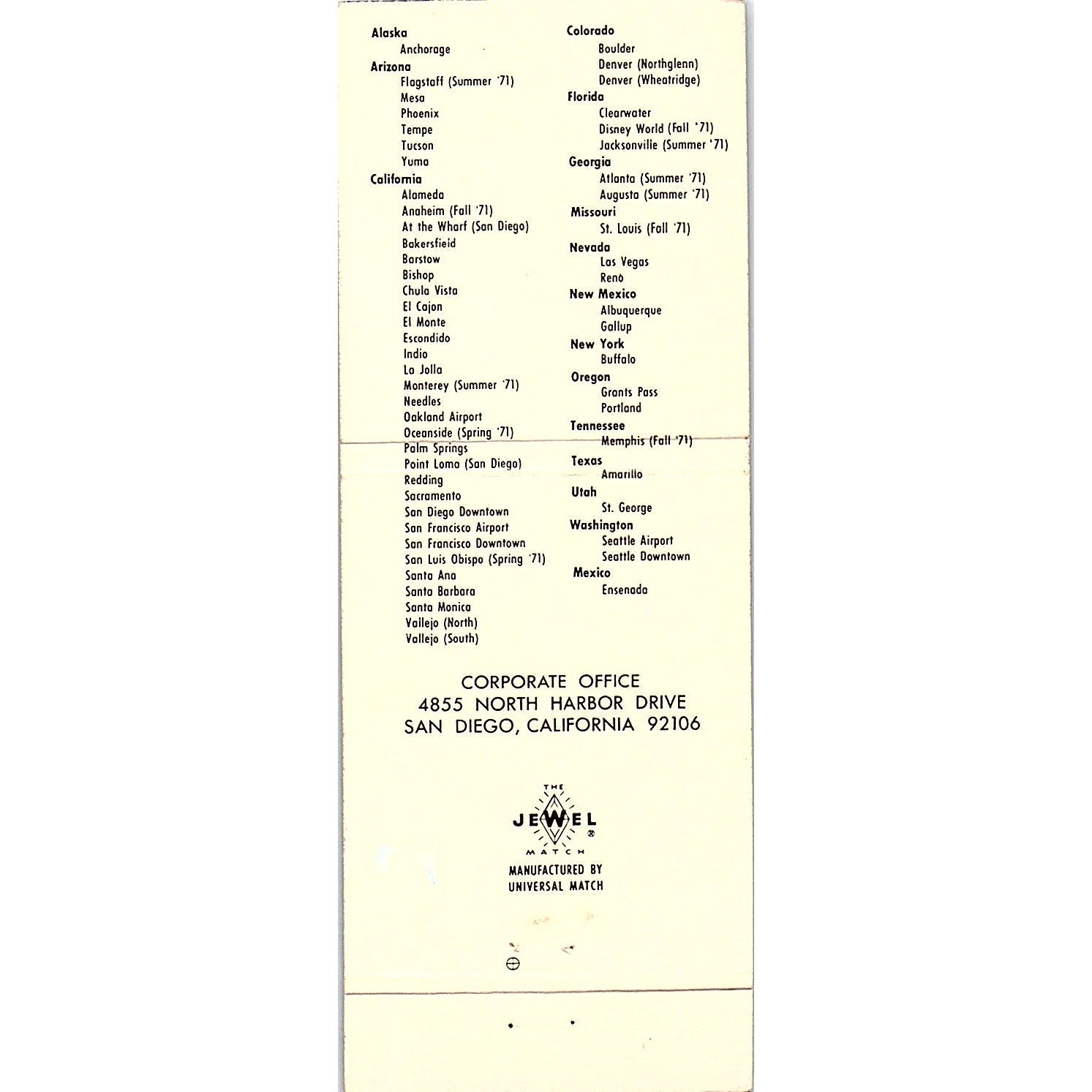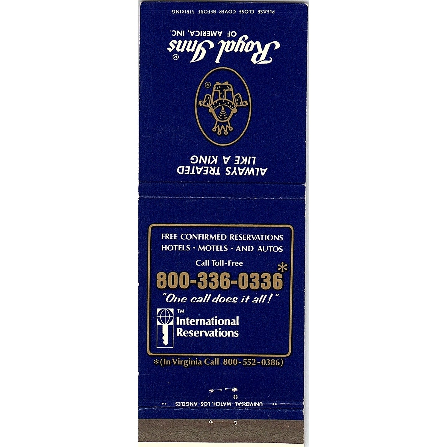 Royal Inns of America San Diego CA Vintage Matchbook TB6-MB2-7