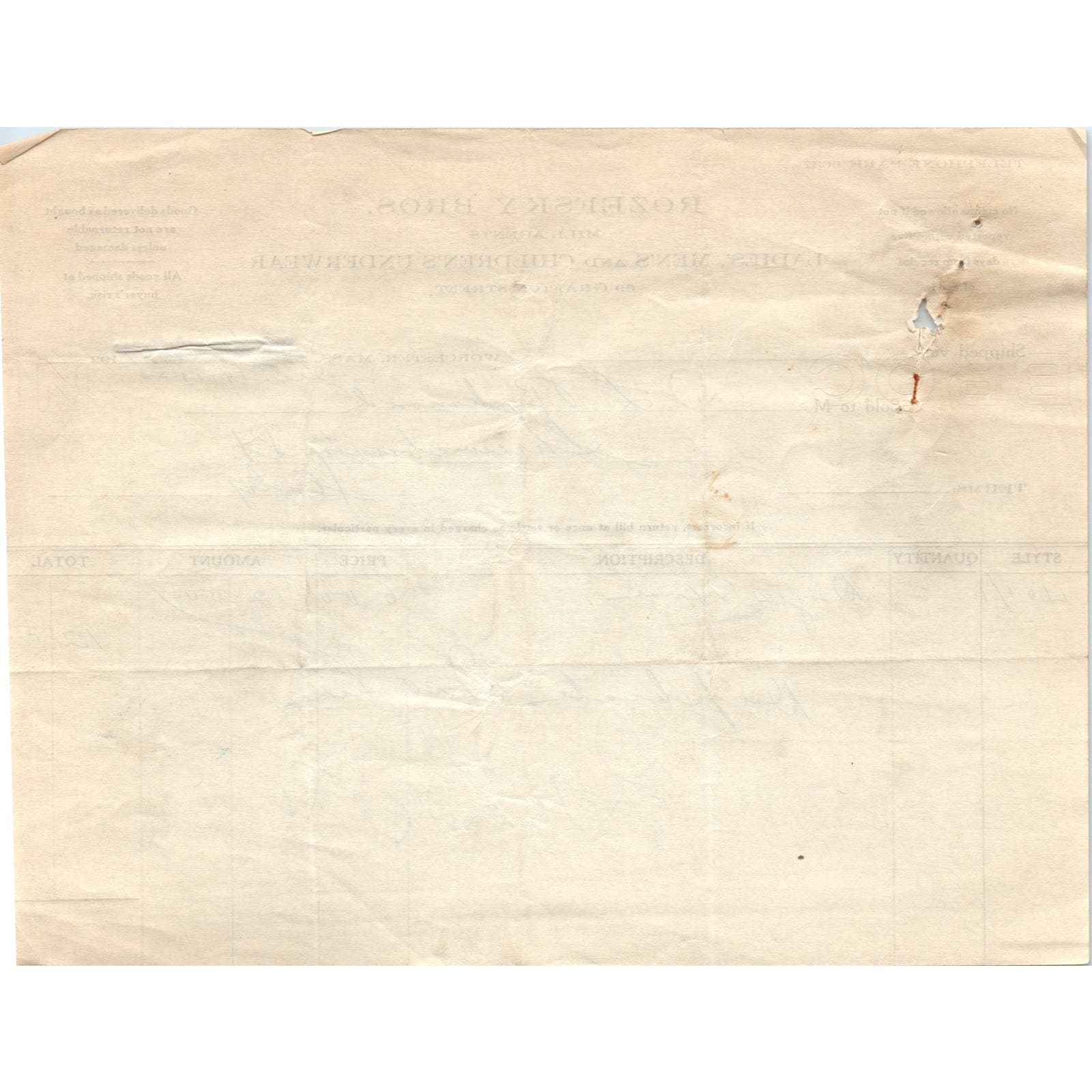 Rozefsky Bros Mill Agents Worcester MA 1924 Original Billhead Letterhead Receipt D7