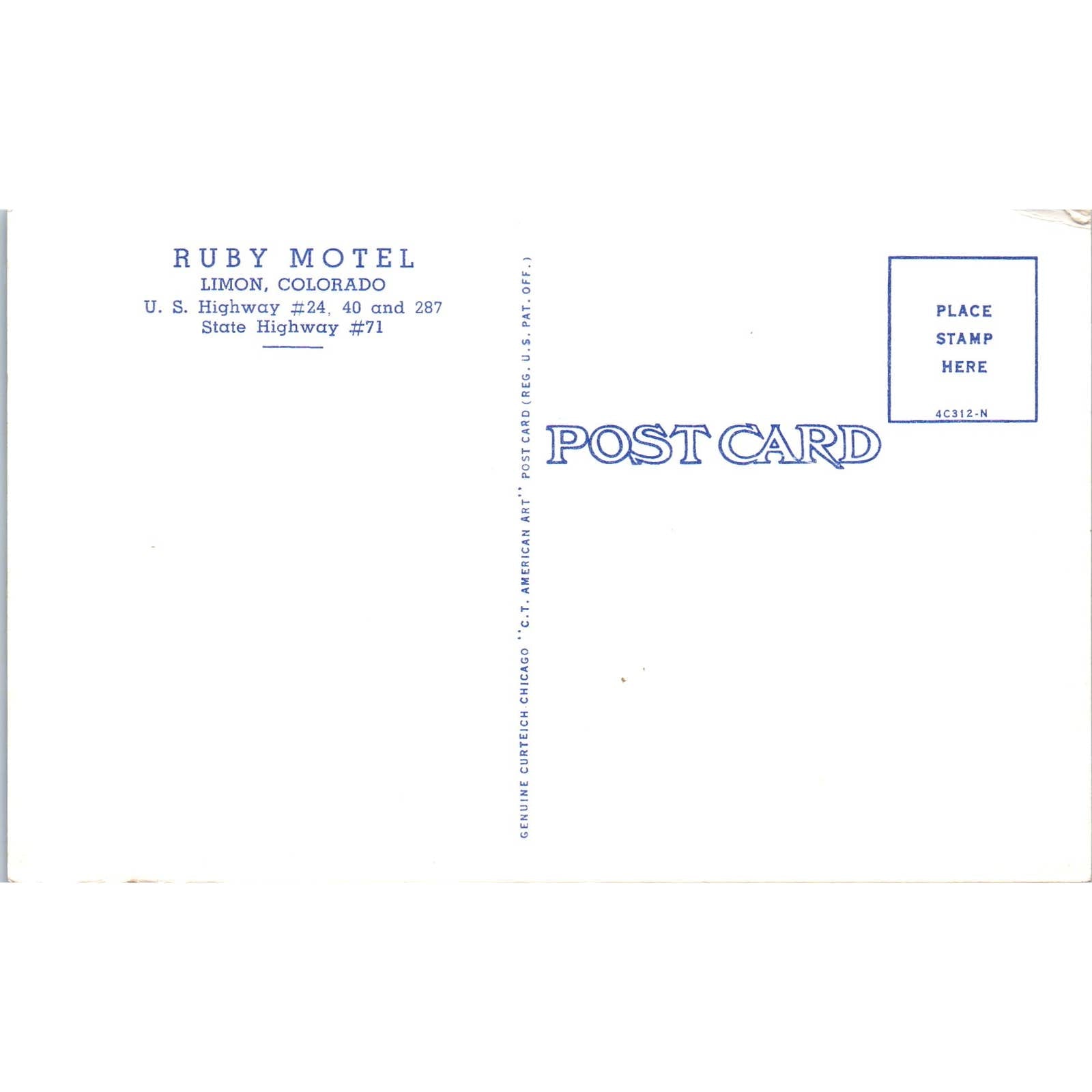 Ruby Motel Limon Colorado Original Postcard TK1-29