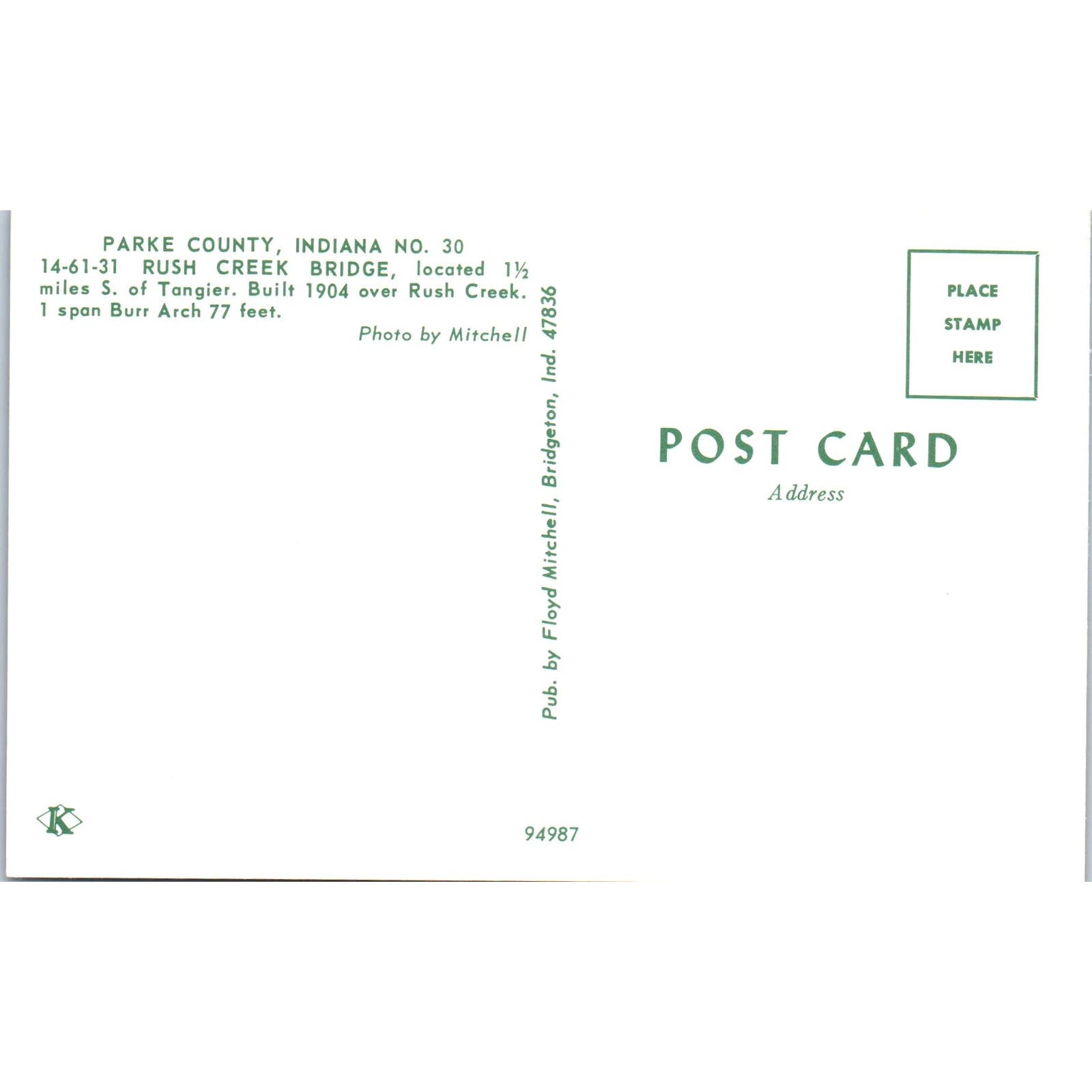 Rush Creek Bridge Parke County IN Vintage Covered Bridge Postcard PD6