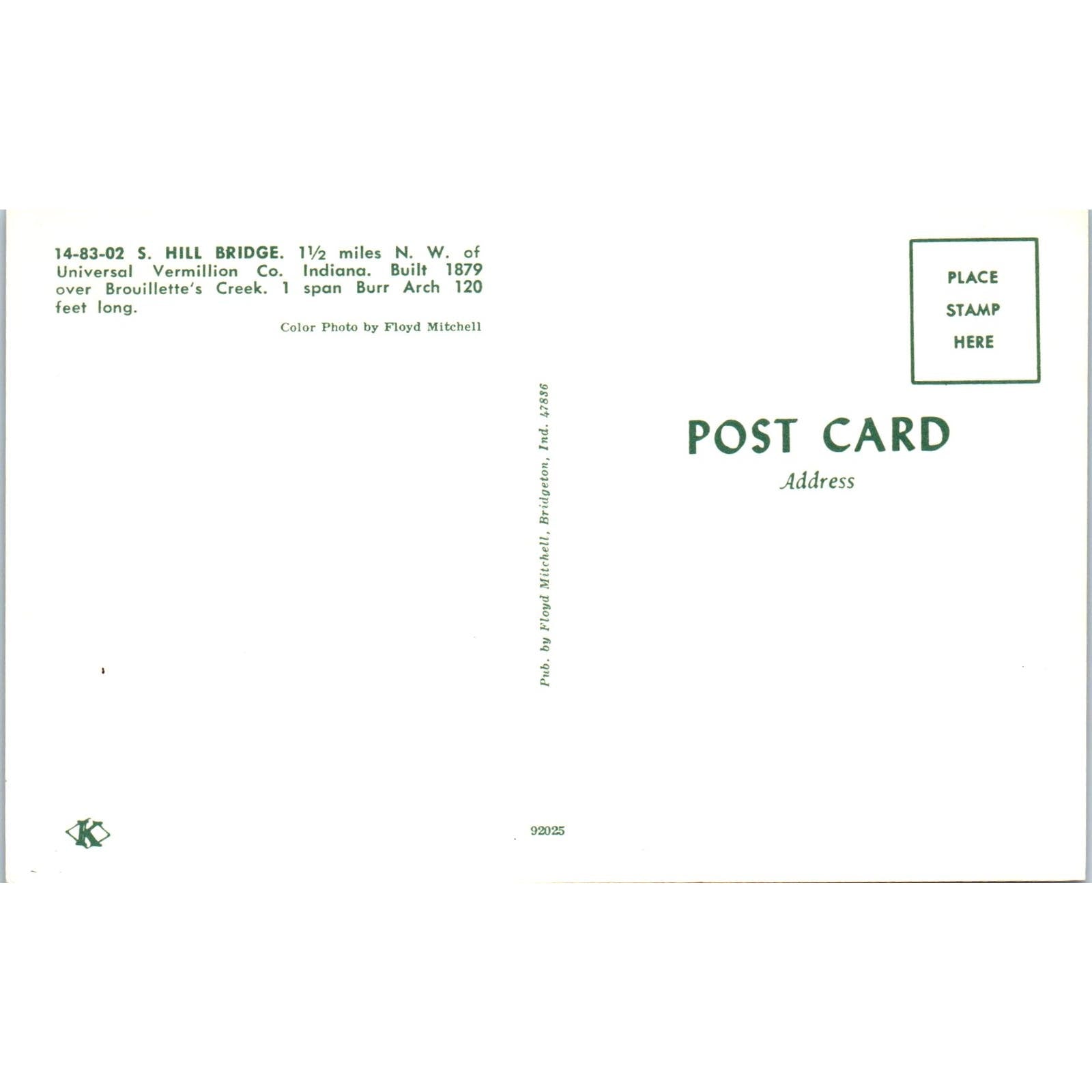 S. Hill Bridge Vermillion Indiana Brouillette Creek Covered Bridge Postcard PB13