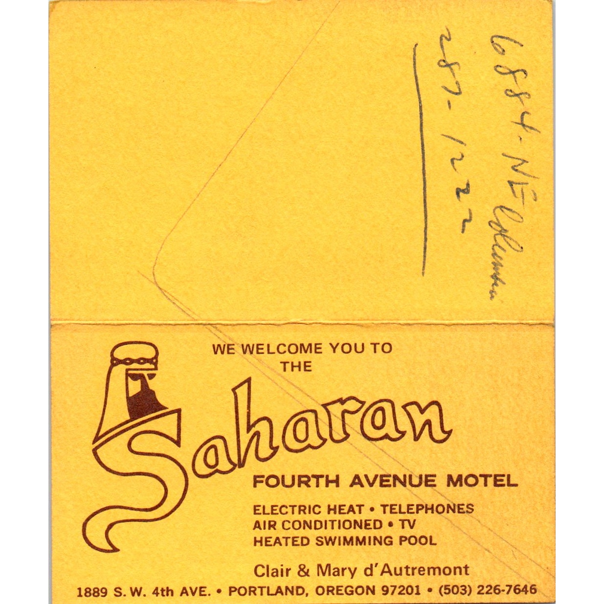 Saharan Fourth Avenue Motel Clair & Mary d'Autremont Portland OR Vintage Business Card SE3-B1