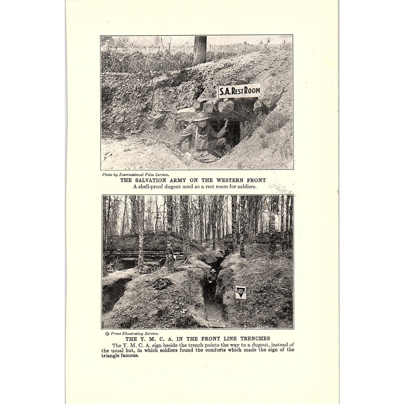 Salvation Army on Western Front, YMCA in Front Line Trenches 1919 WWI Print AF9-18