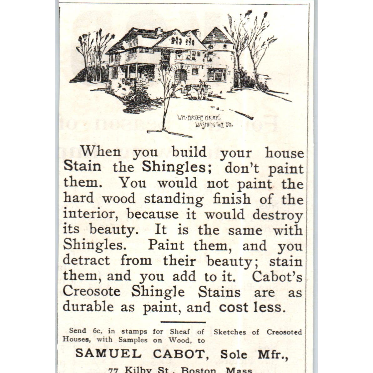 Samuel Cabot's Stain the Shingles Boston MA c1890 Victorian Ad AE8-CH6