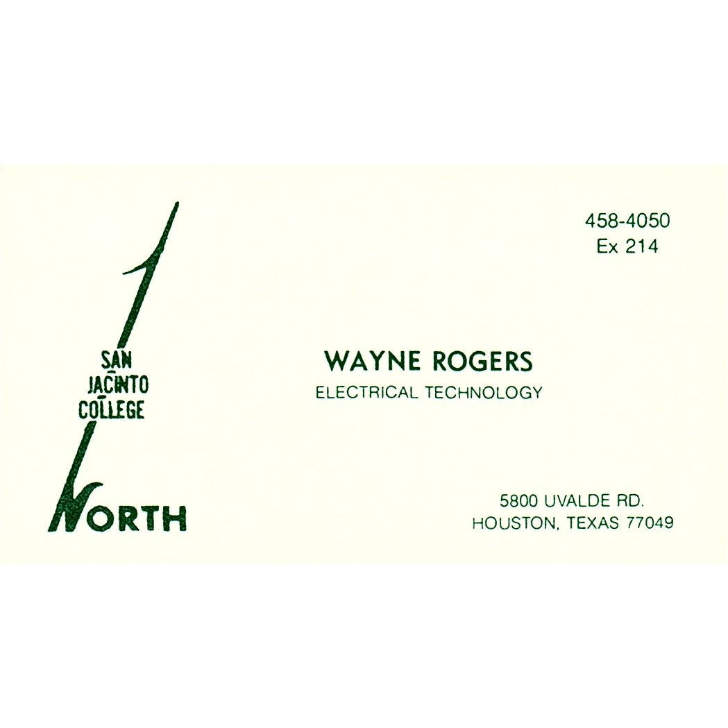 San Jacinto College Wayne Rogers Uvalde RD Houston Vintage Business Card SF3-B5