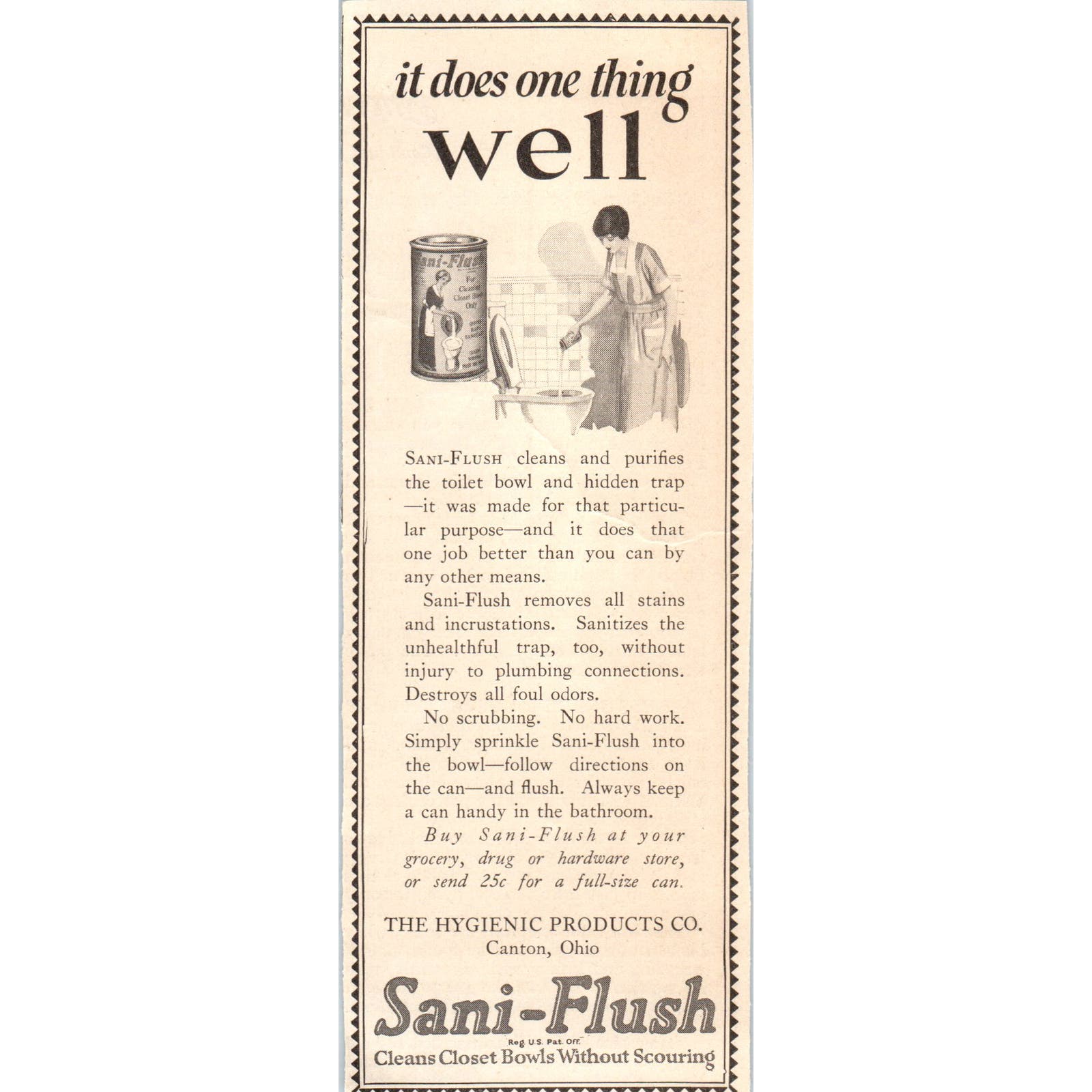 Sani-Flush The Hygienic Products Co Canton OH 1924 Magazine Ad AF7-LJ1