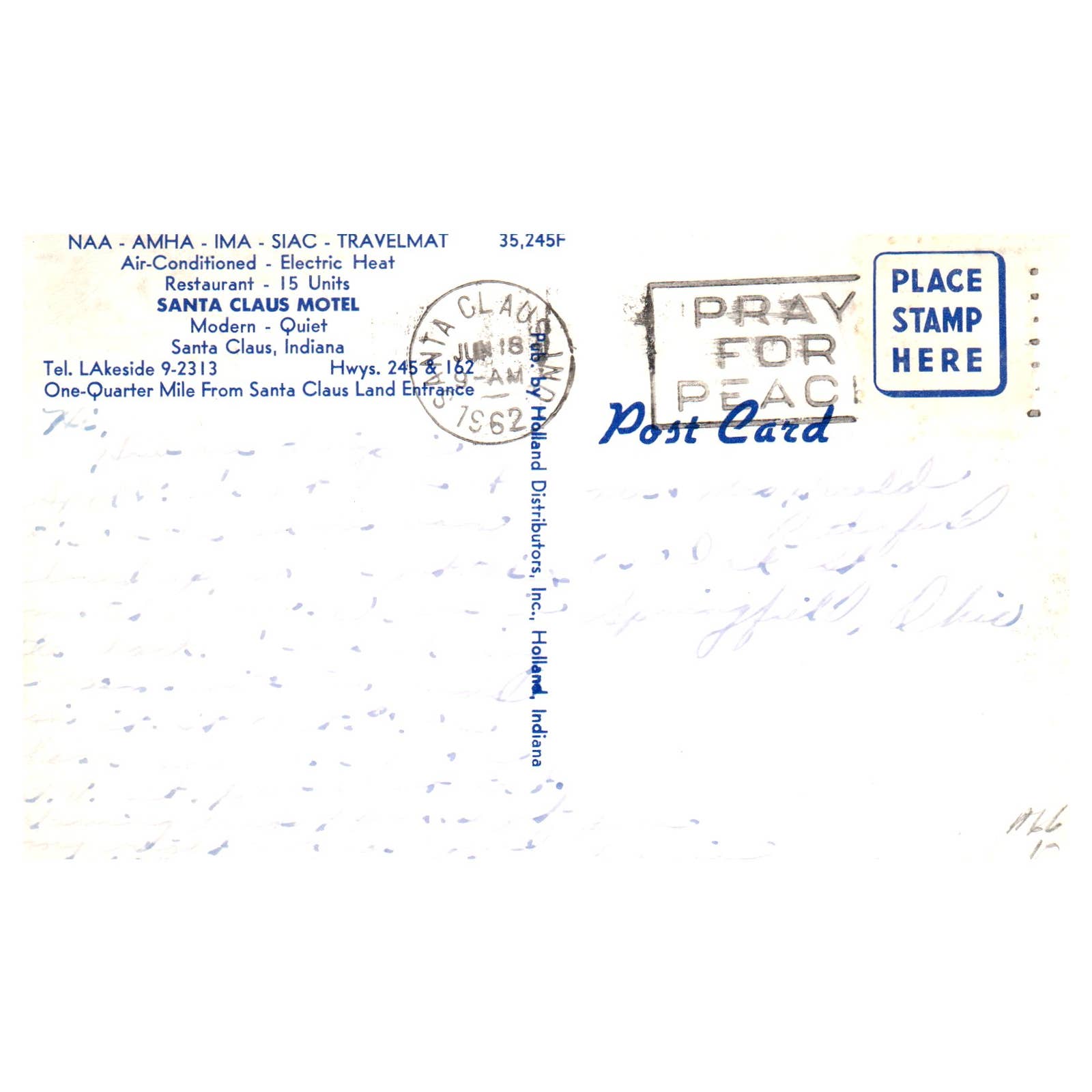 Santa Claus Motel Santa Claus Indiana 1962 - Postcard TJ8-1