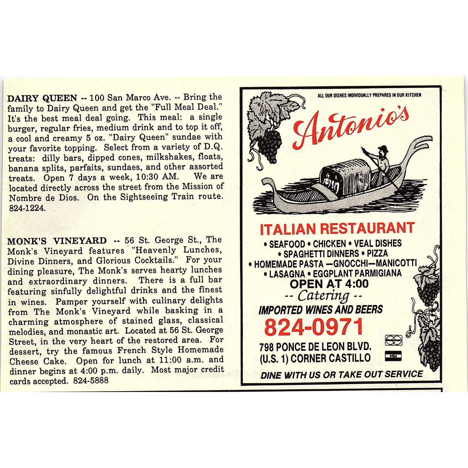 Santa Maria Restaurant Connell City Yacht Pier St. Augustine FL 1989 Ad AF9-12