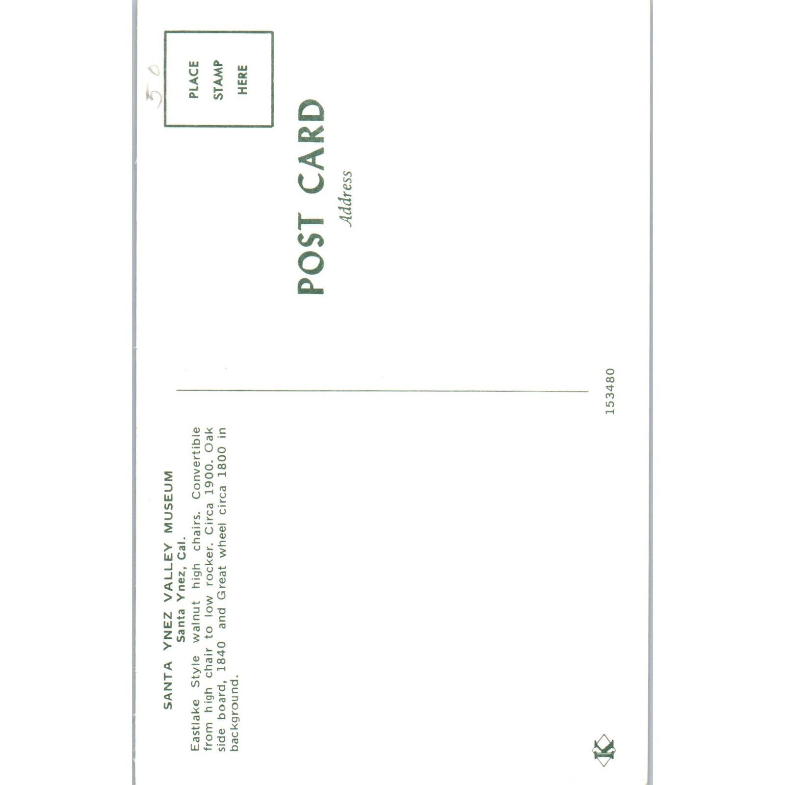 Santa Ynez Valley Museum Walnut Chairs & Doll CA Original Postcard PB6
