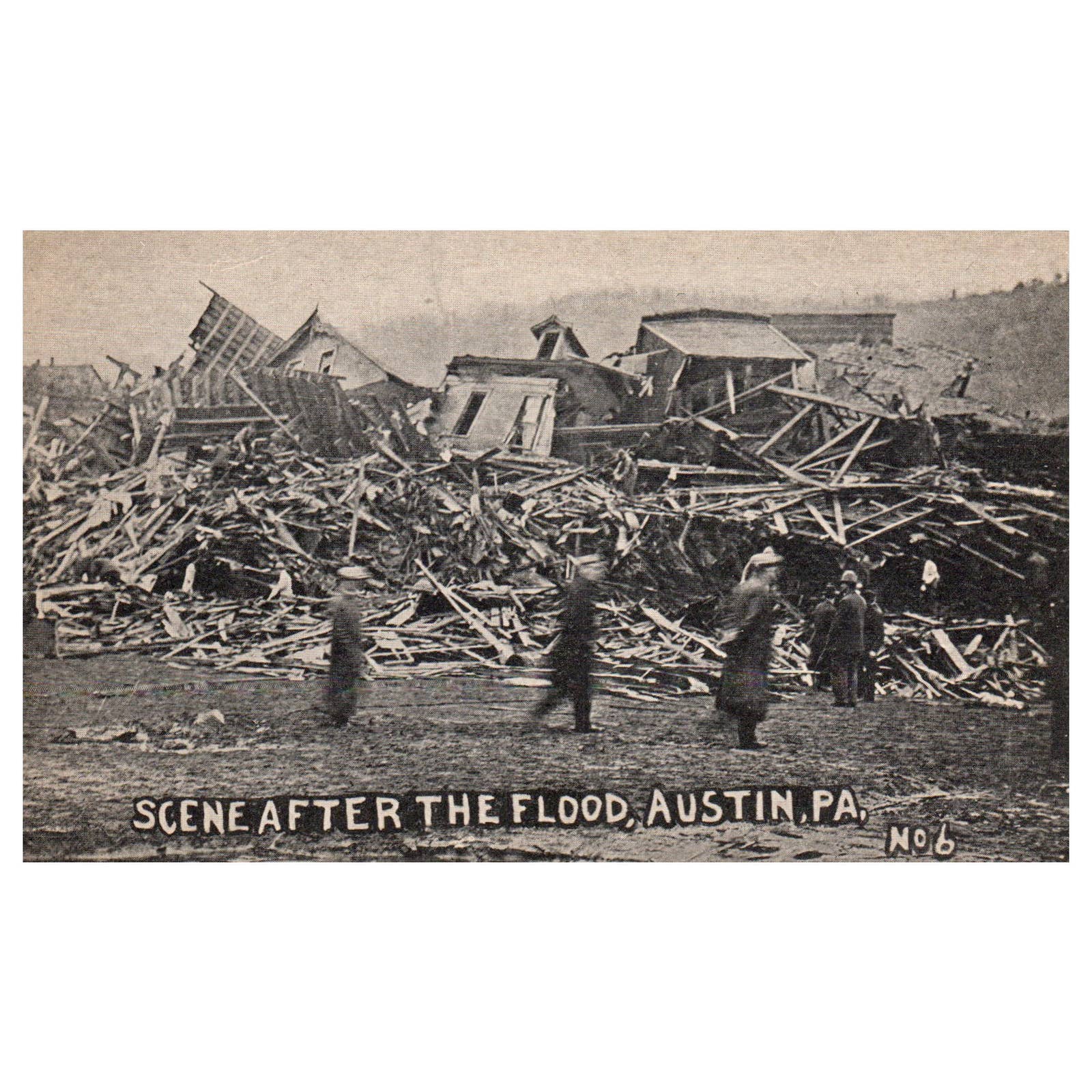 Scene After the Flood Austin Pennsylvania - Real Photo Postcard RPPC TJ8-3