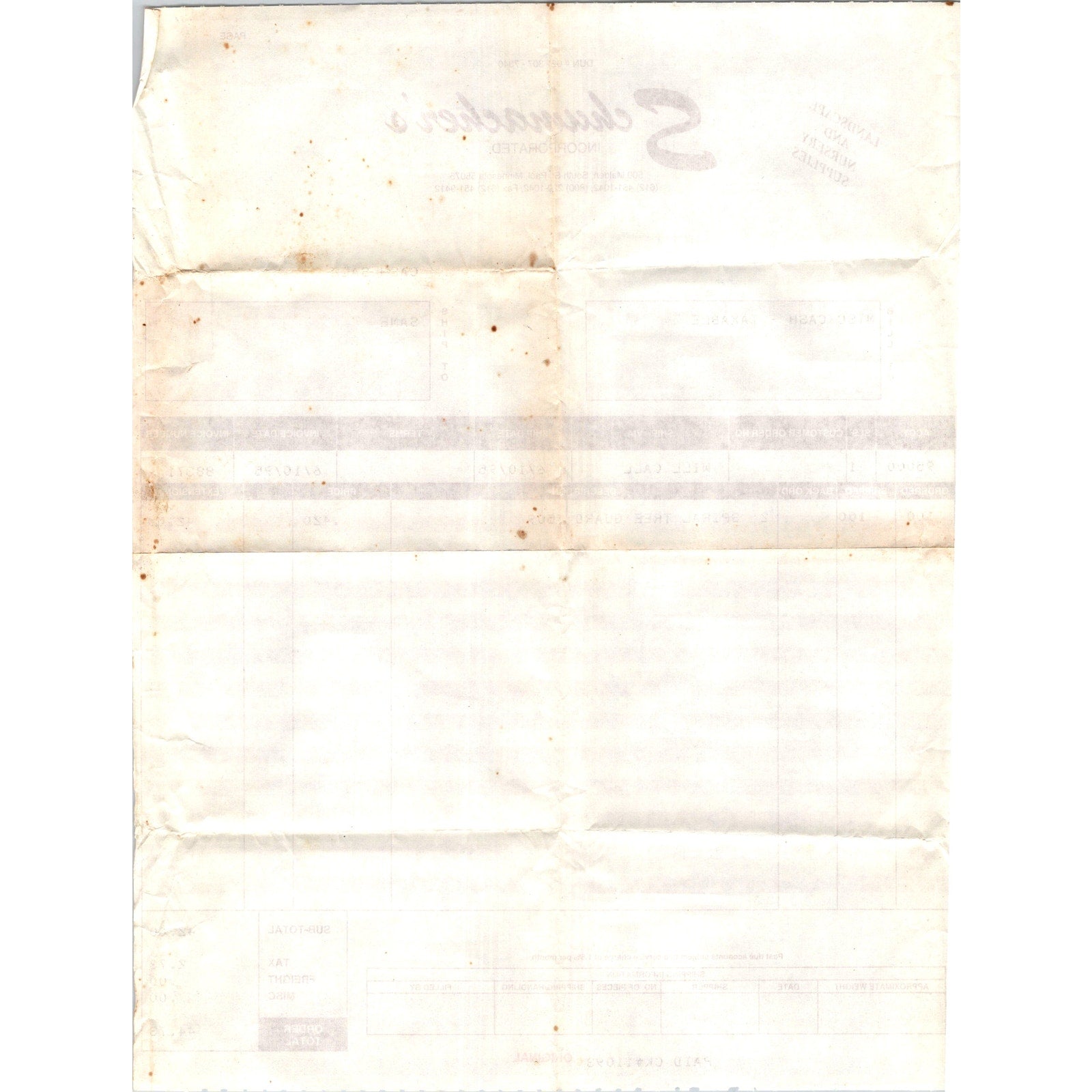 Schumacher's Incorporated Landscape Nursery South St. Paul MN 1995 Billhead K23