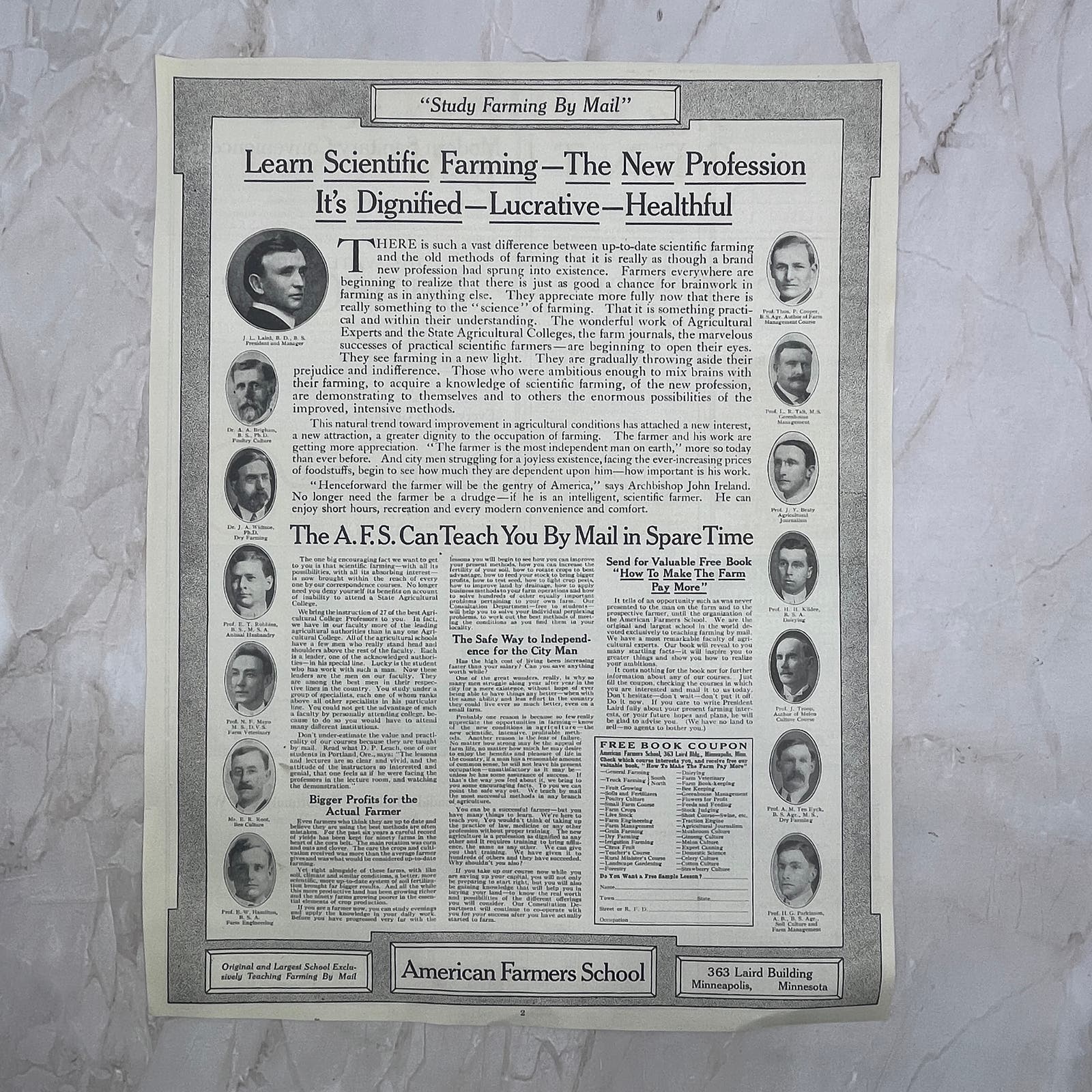 Learn Scientific Farming American Farmers School Minneapolis MN 10x12 1913 Original Magazine Advertisement FL6-8