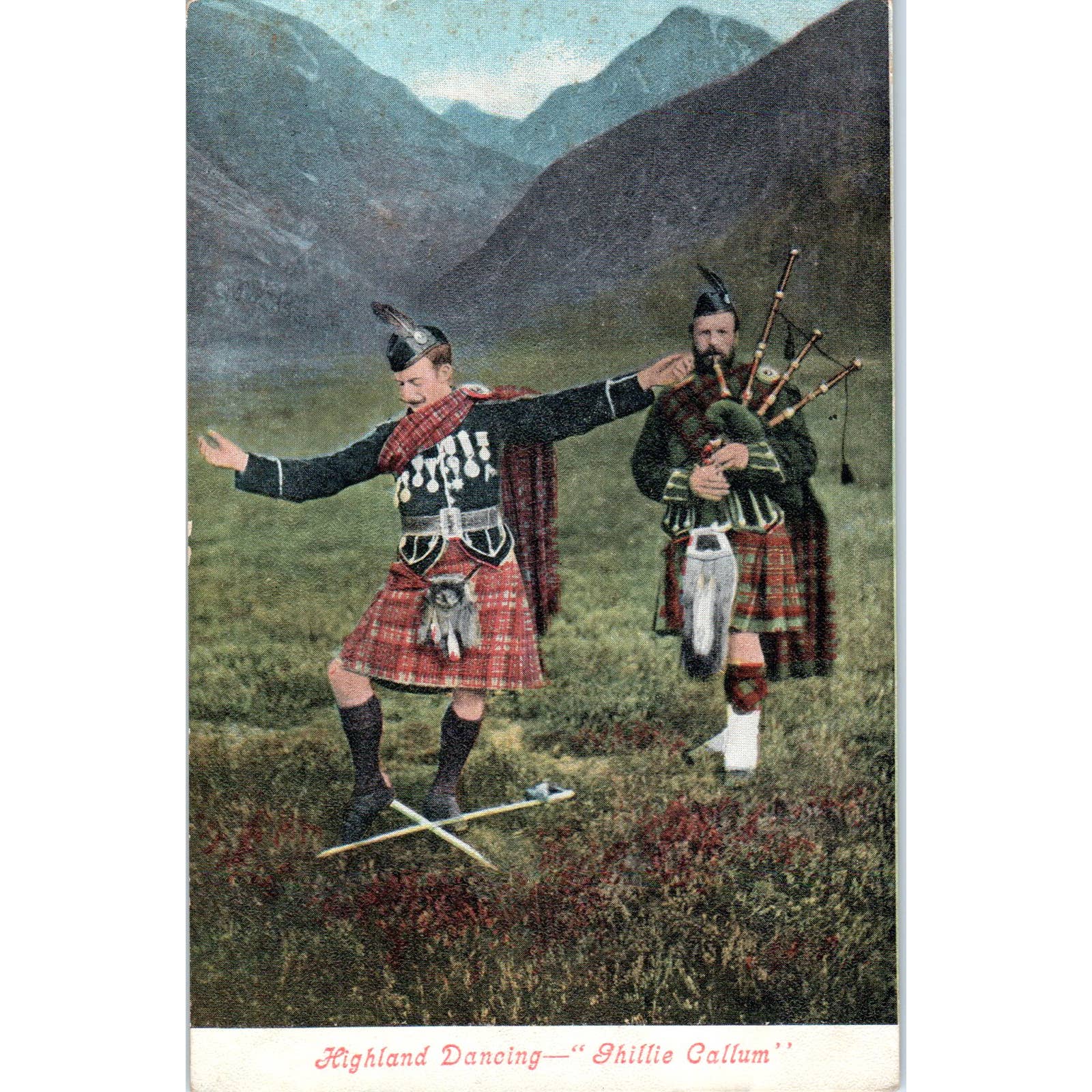 Scotland Highland Dancing Ghillie Charm Bagpipes Original Postcard TK1-21