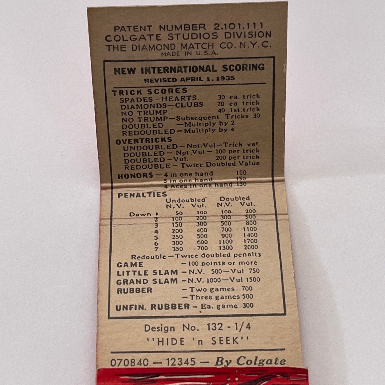 Scotty Dog International Card Game Scoring 1935 Vintage Matchbook Cover TB8-MB-10