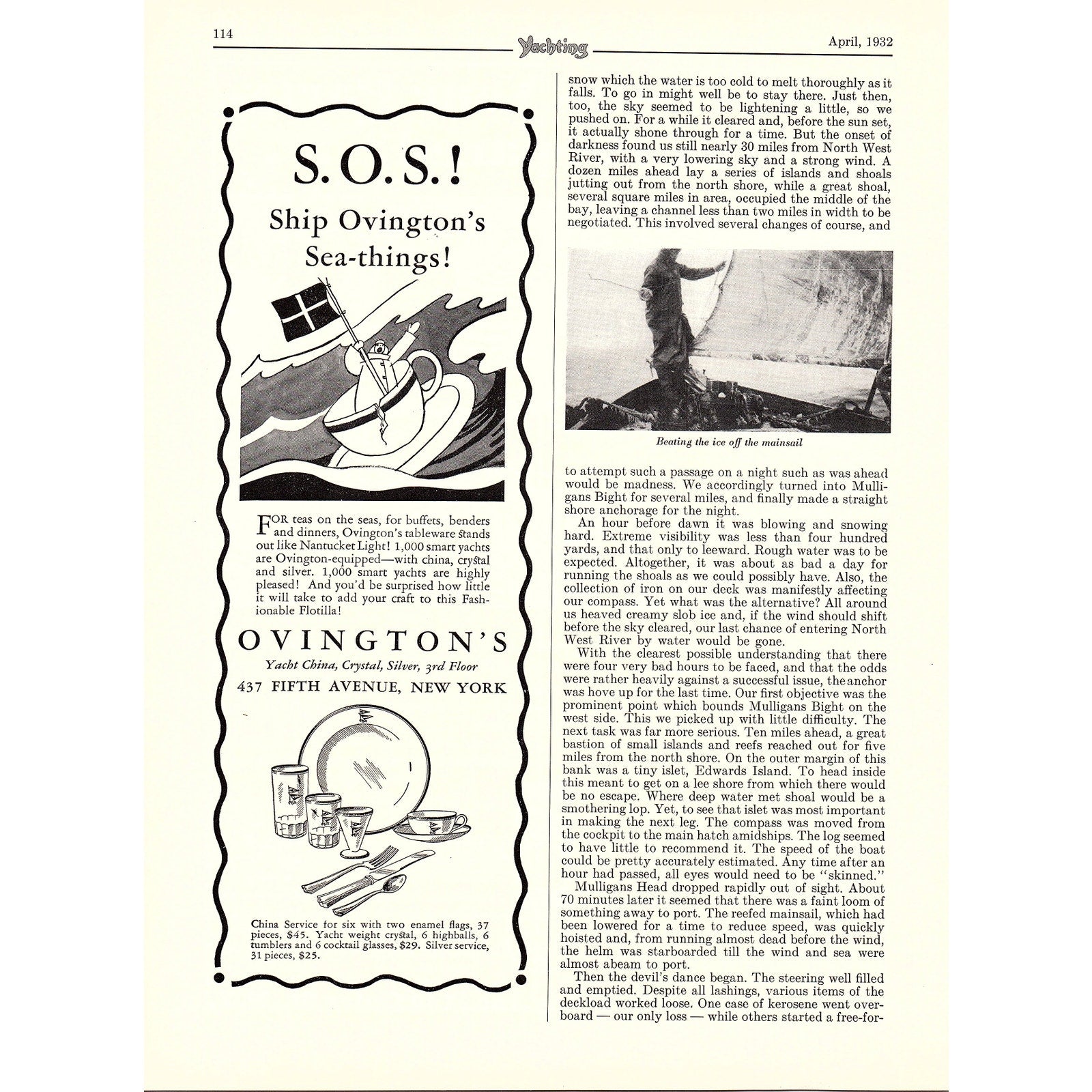Approx 8.5x11.5". Original piece taken from 1932 Yachting Magazine. May have blemishes you would expect from something this age. See pics for condition.