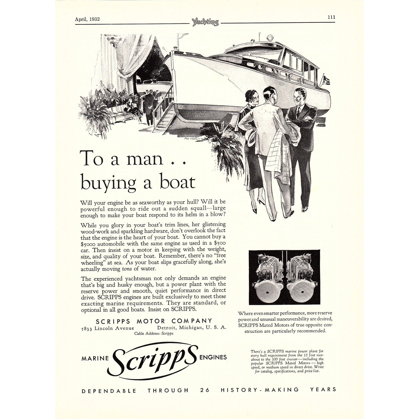 Scripps Marine Engines Scripps Motor Co Detroit MI 1932 Ad V1-4