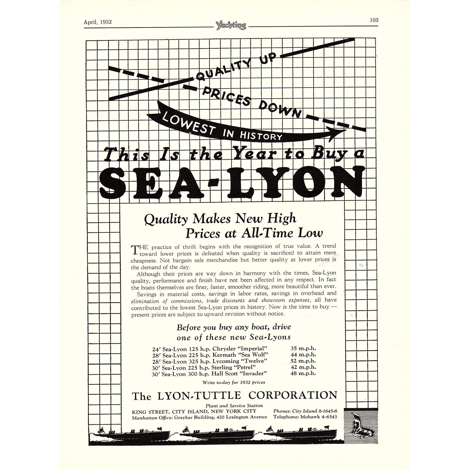 Sea-Lyon Yachts - Lyon-Tuttle Corporation New York City 1932 Ad V1-4