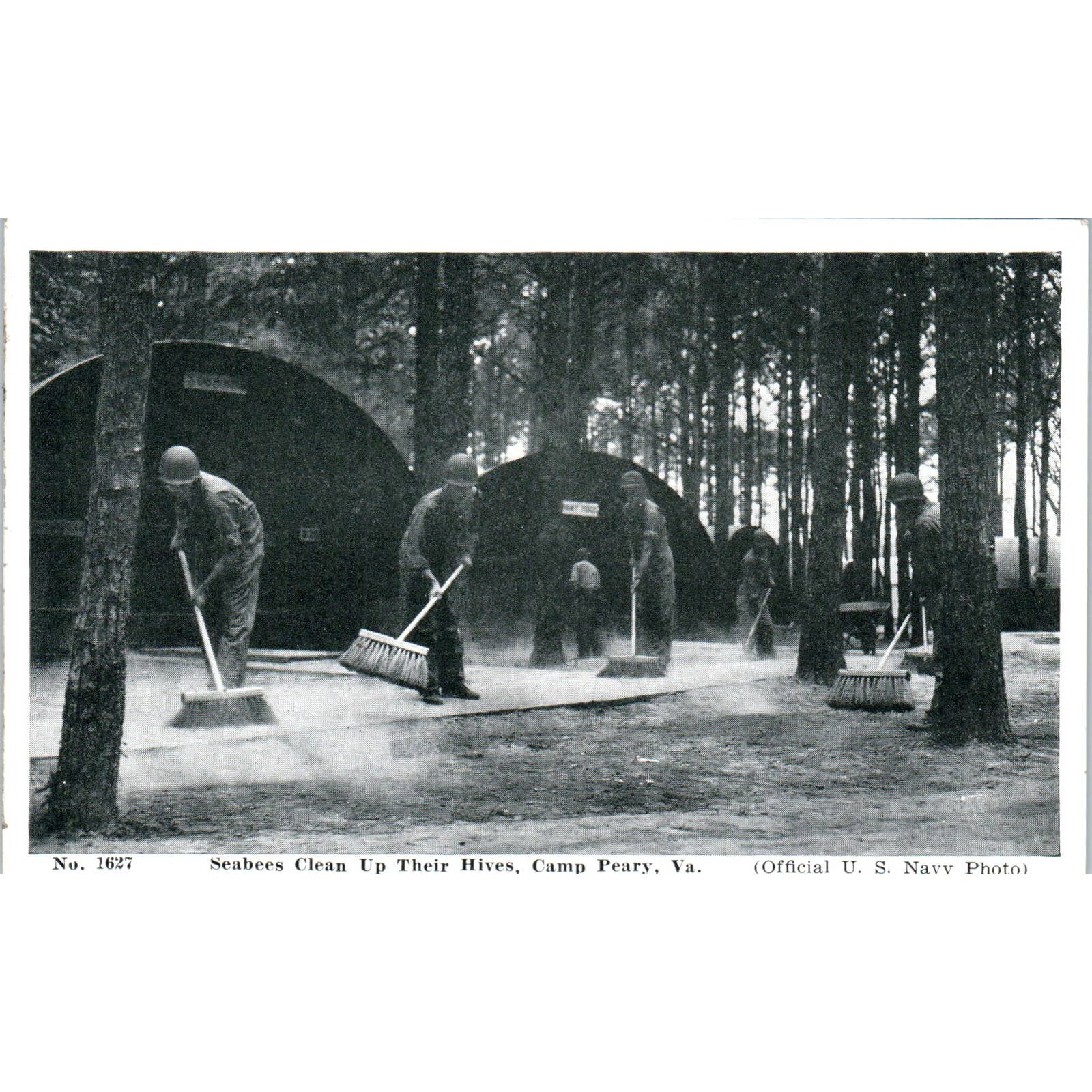 Seabees Clean Up Their Hives Camp Perry VA Navy - Original RPPC Postcard TJ7-RP1