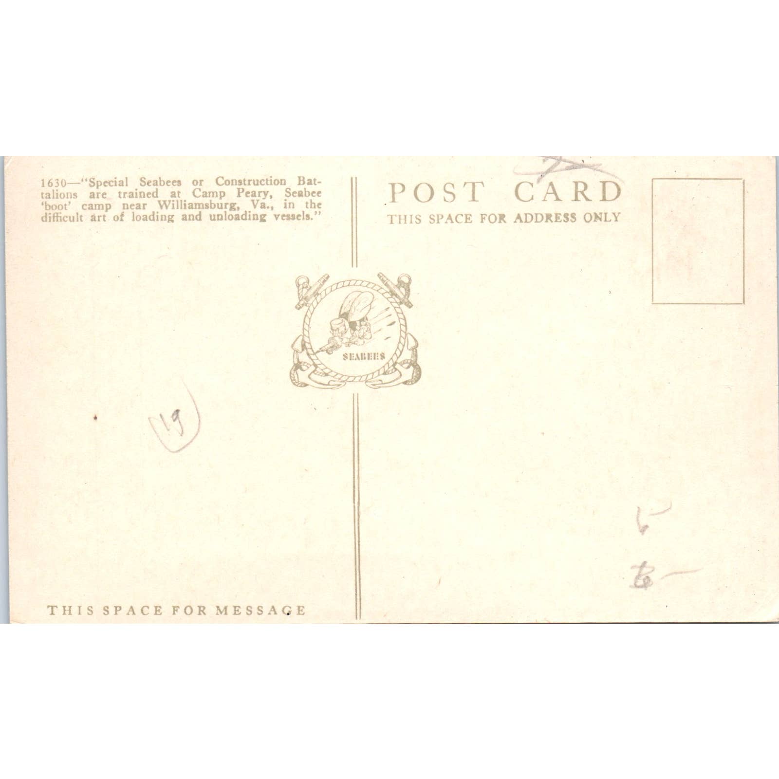 Seabees Unloading Supplies Camp Perry VA Navy - Original RPPC Postcard TJ7-RP1