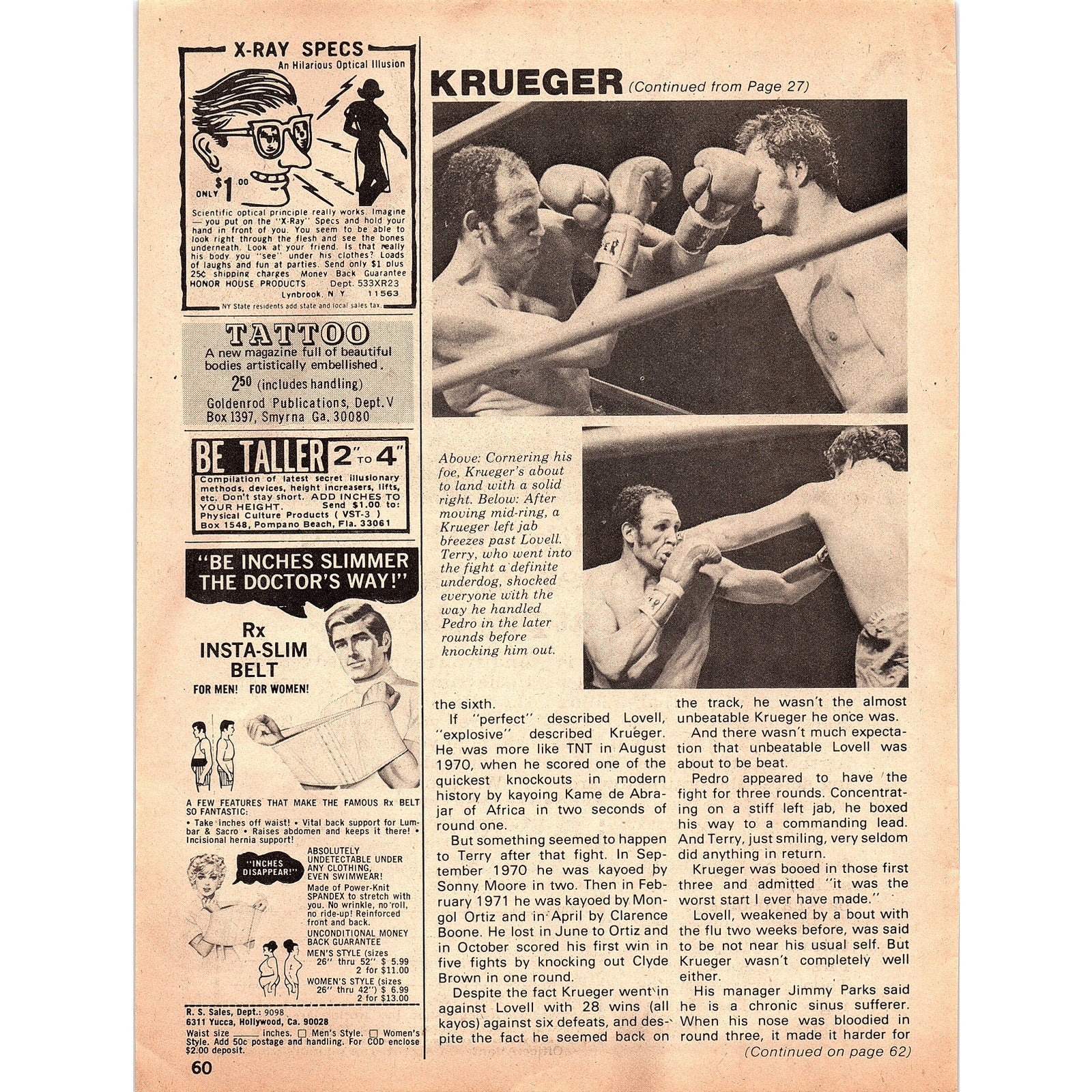 Measures approximately 8x11". Original piece pulled from 1974 World Boxing Magazine. See pics for condition.
