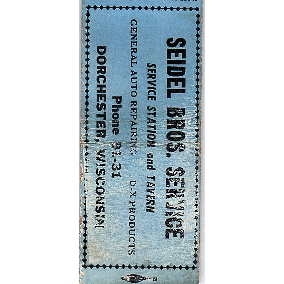 Seidel Bros Service Dorchester WI Vintage Matchbook Cover SF3-Y1