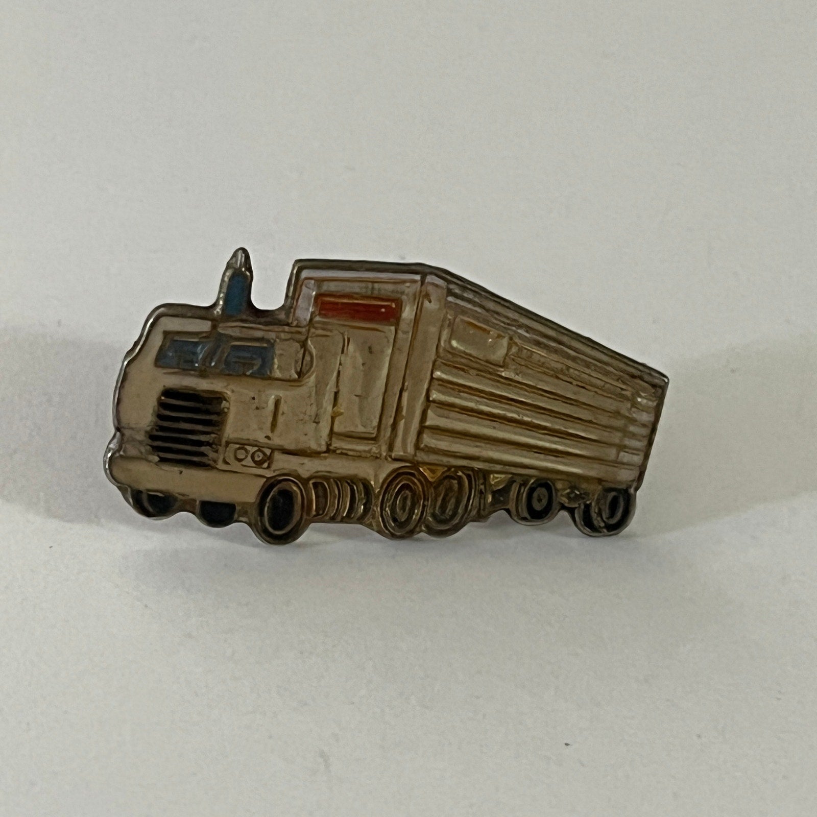 Semi Truck Tractor Trailer White Vintage Lapel Pin Enamel Pinback Button SD6