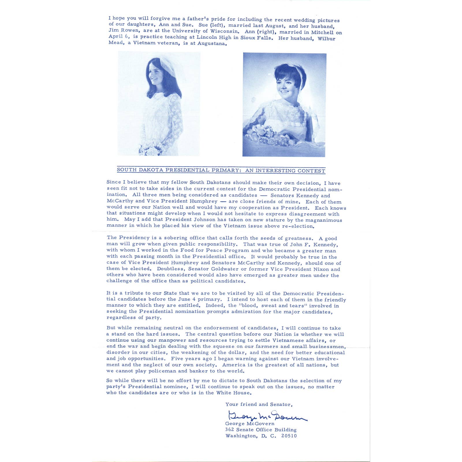 Senator George McGovern Reports Newsletter April 1968 Original TK1-P7