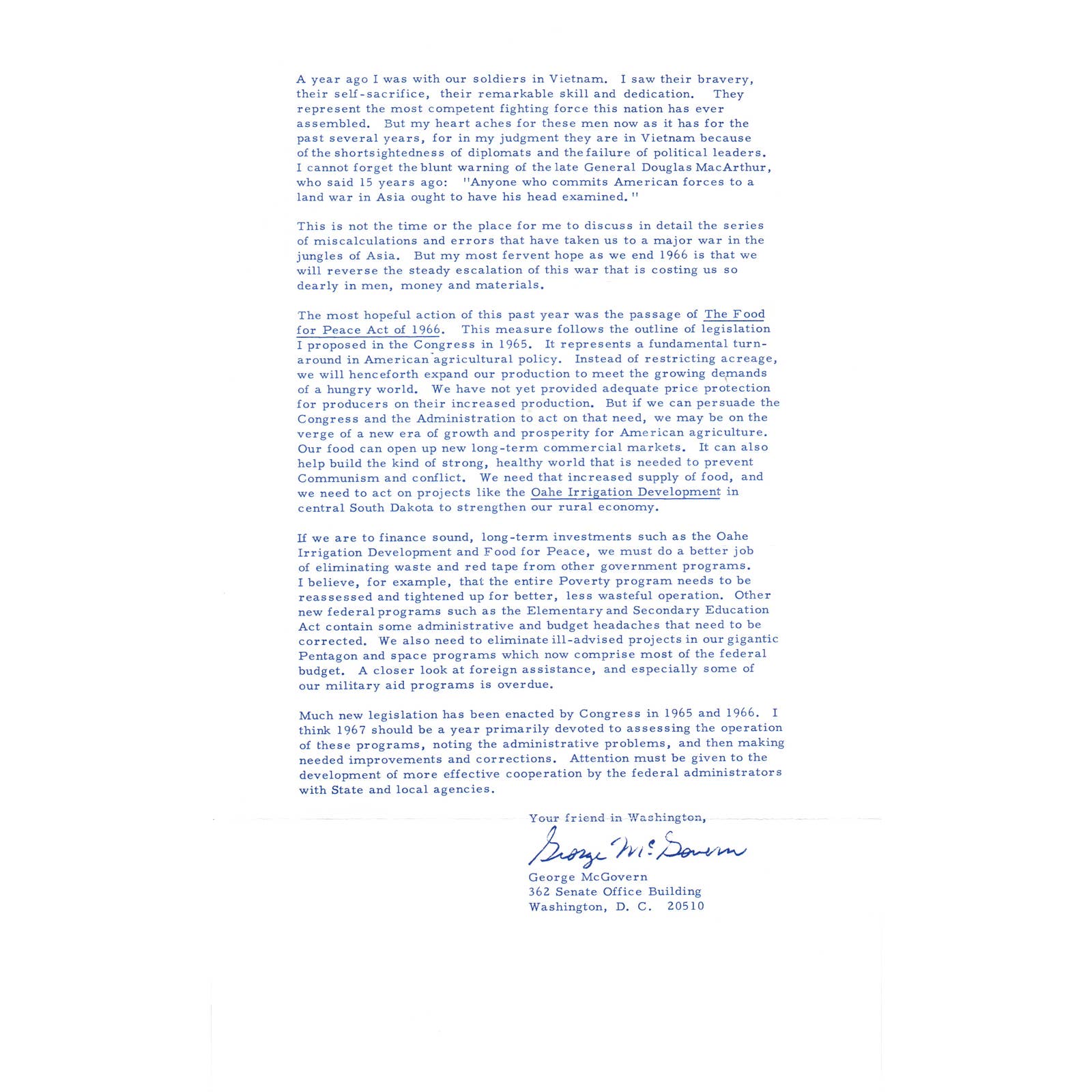 Senator George McGovern Reports Newsletter Dec 1966 Christmas TK1-P7