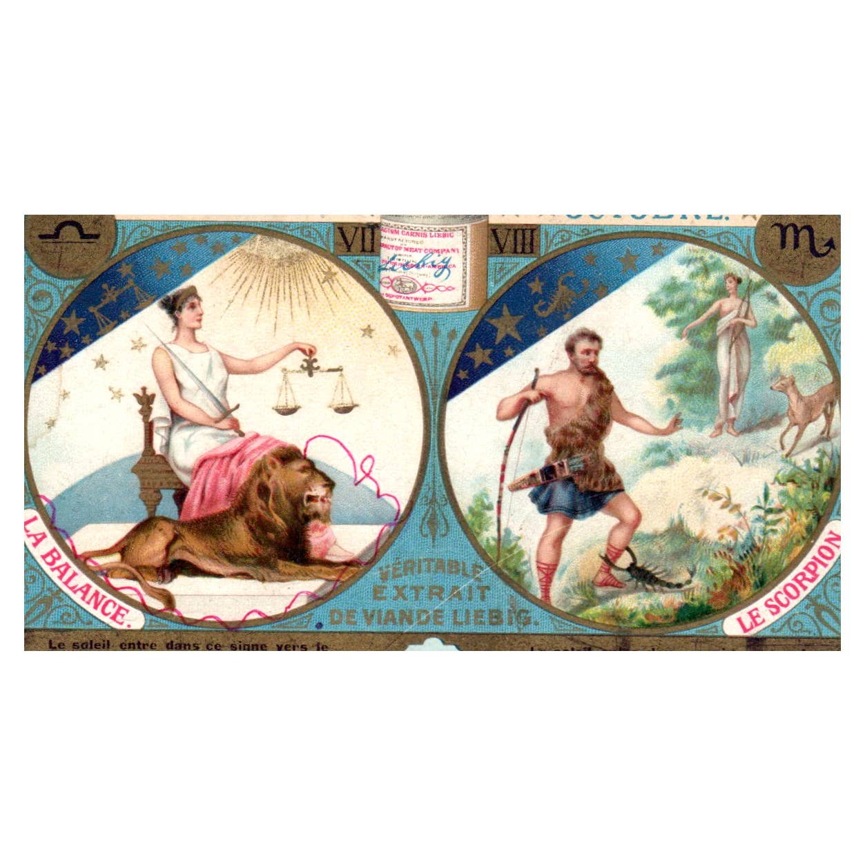 September and October: Libra and Scorpio FRENCH 1880s Victorian Trade Card TJ8-3