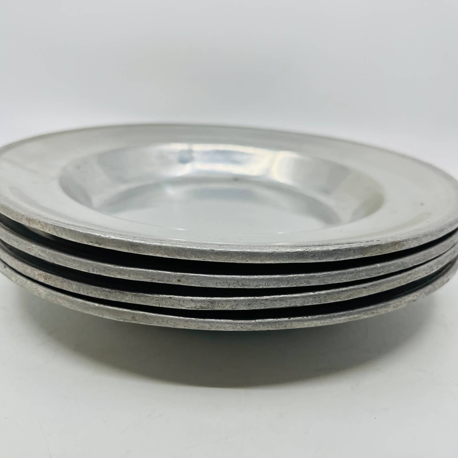 Set 4 York Metalcrafters Colonial Pewter Shallow Soup Salad Bowl Plates 9” TC9