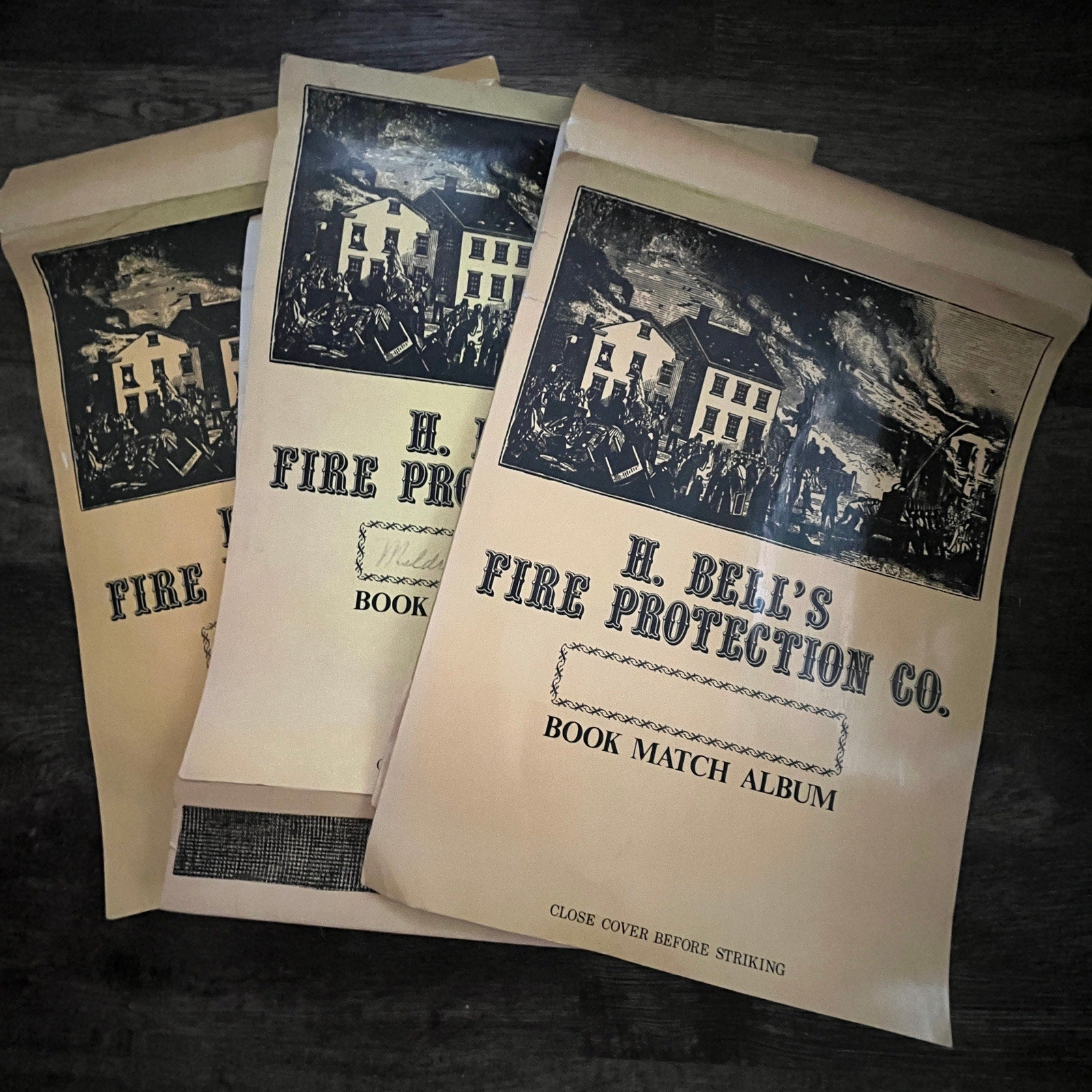 Set of 3 Vintage H. Bell's Fire Protection Co. Novelty Matchbook Albums Empty V36