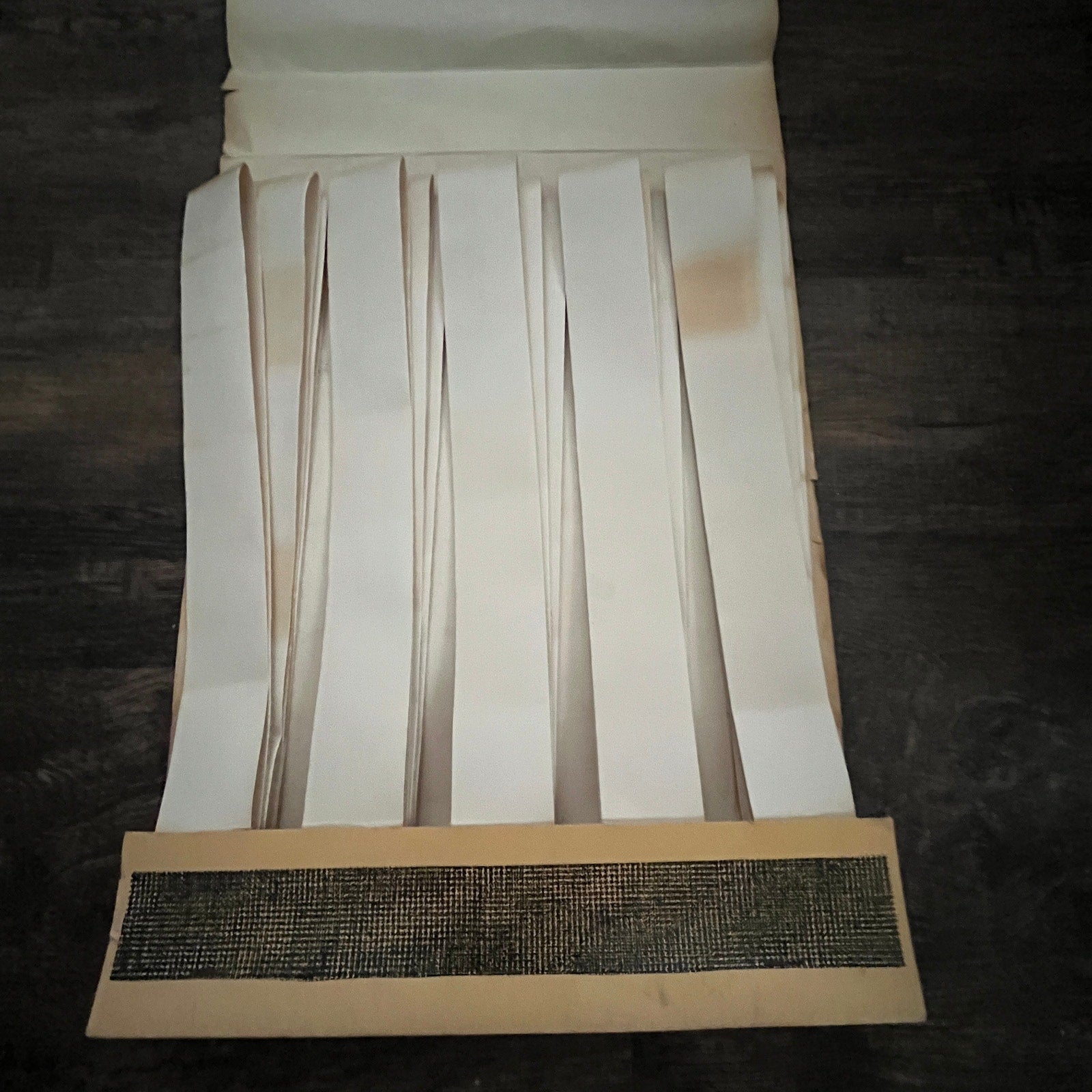 These measure approx 16 3/4 x 11". One has writing on the front, all have various wear and tear from age. See pics for condition.