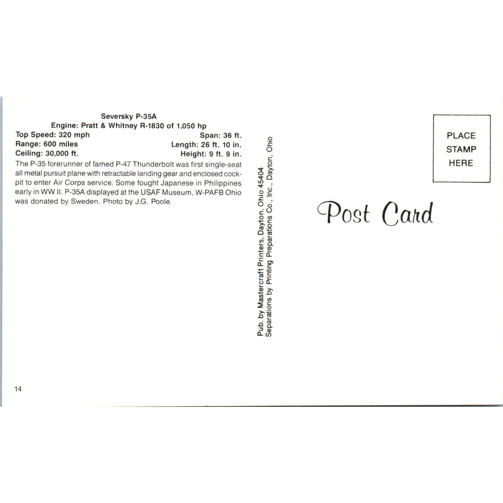 Seversky P-35A Vintage Postcard PC19