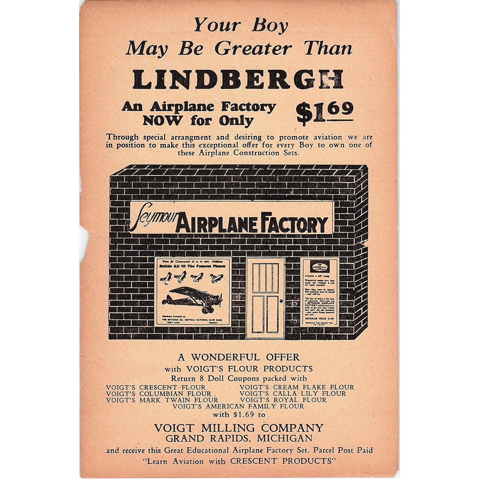 Seymour Airplane Factory Lindbergh Voight Milling Co Antique Magazine Ad 5.5x8.5 V4