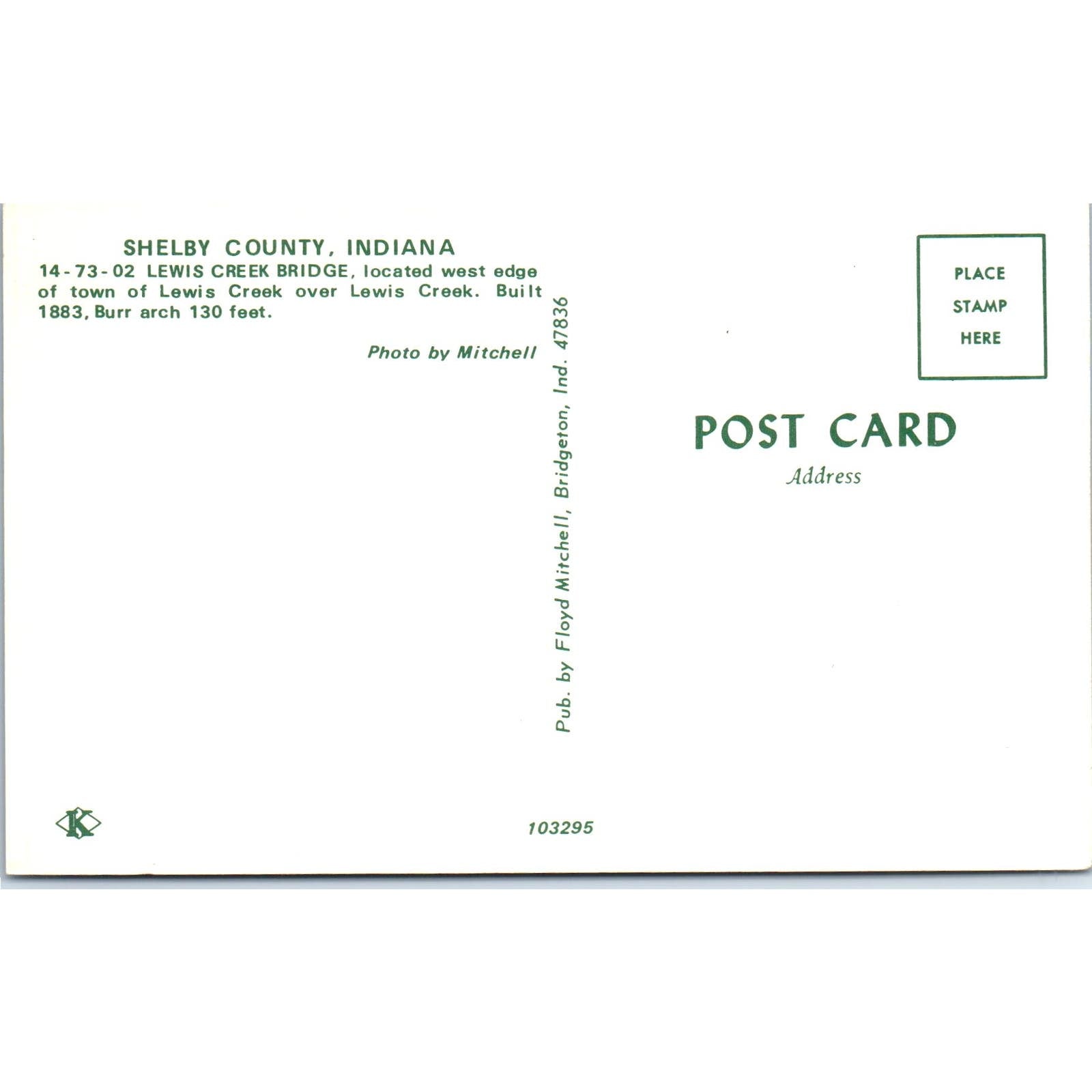 Shelby County Lewis Creek Bridge Indiana Vintage Covered Bridge Postcard PC16
