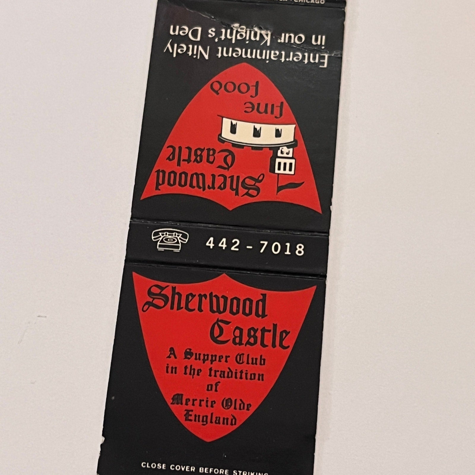 Sherwood Castle Lyons Illinois Vintage Matchbook Cover TB6-MB2-2