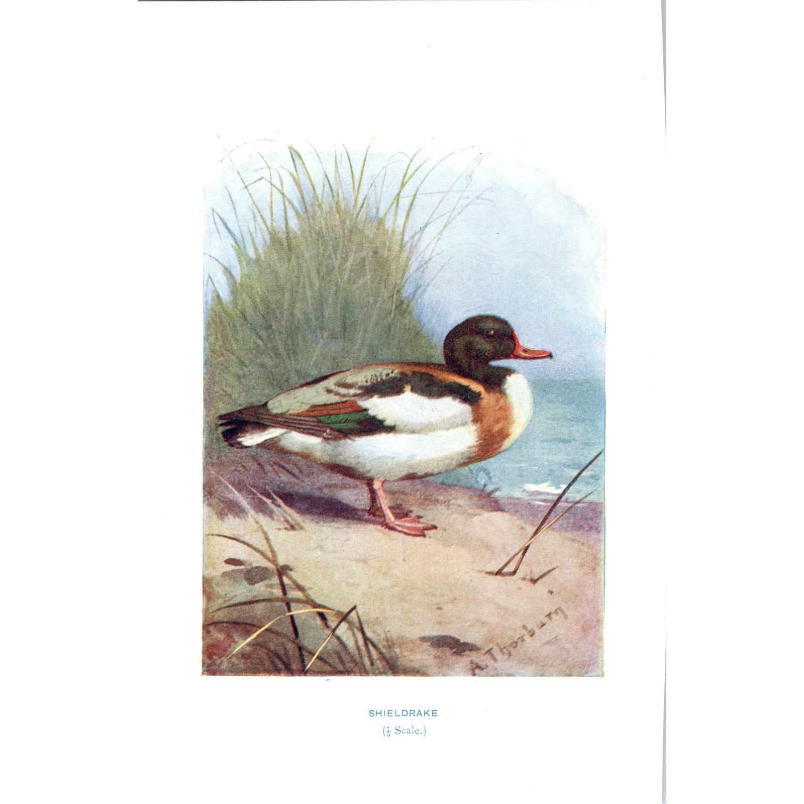 Shieldrake Bird 1903 Original Color Engraving Plate Print AD8-B5