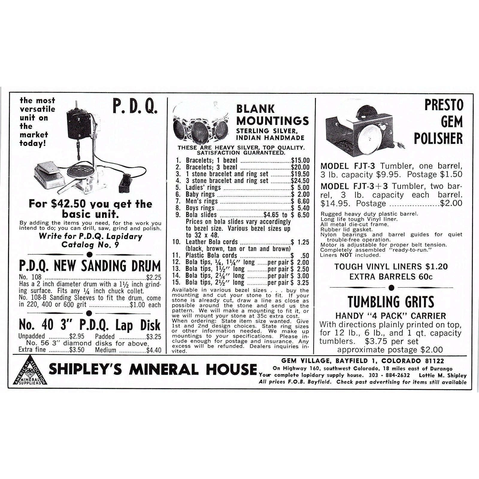 Shipley's Mineral House Bayfield Colorado 1972 Ad AF8-2