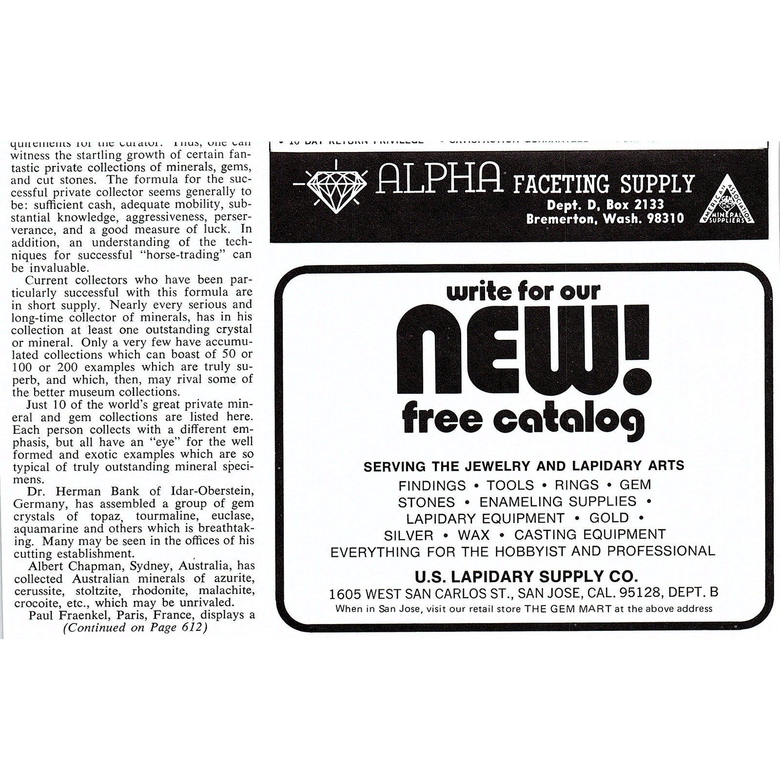 Measures approx 5x7". This is a SMALL Ad, size is approximate. Original piece taken from a 1972 Lapidary Journal magazine. Has regular wear and tear you would expect from a piece this age. See pics for condition.