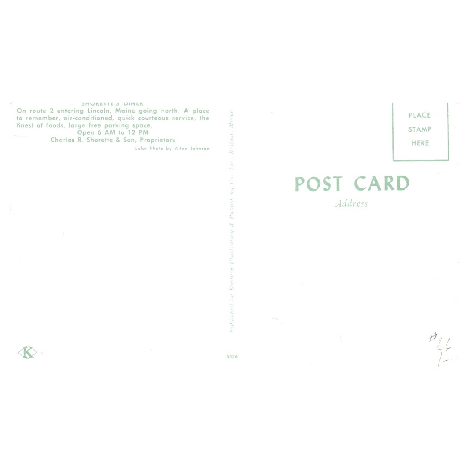 Shorette's Diner Route 2 Lincoln Maine Charles Shorette - Postcard TJ8-1