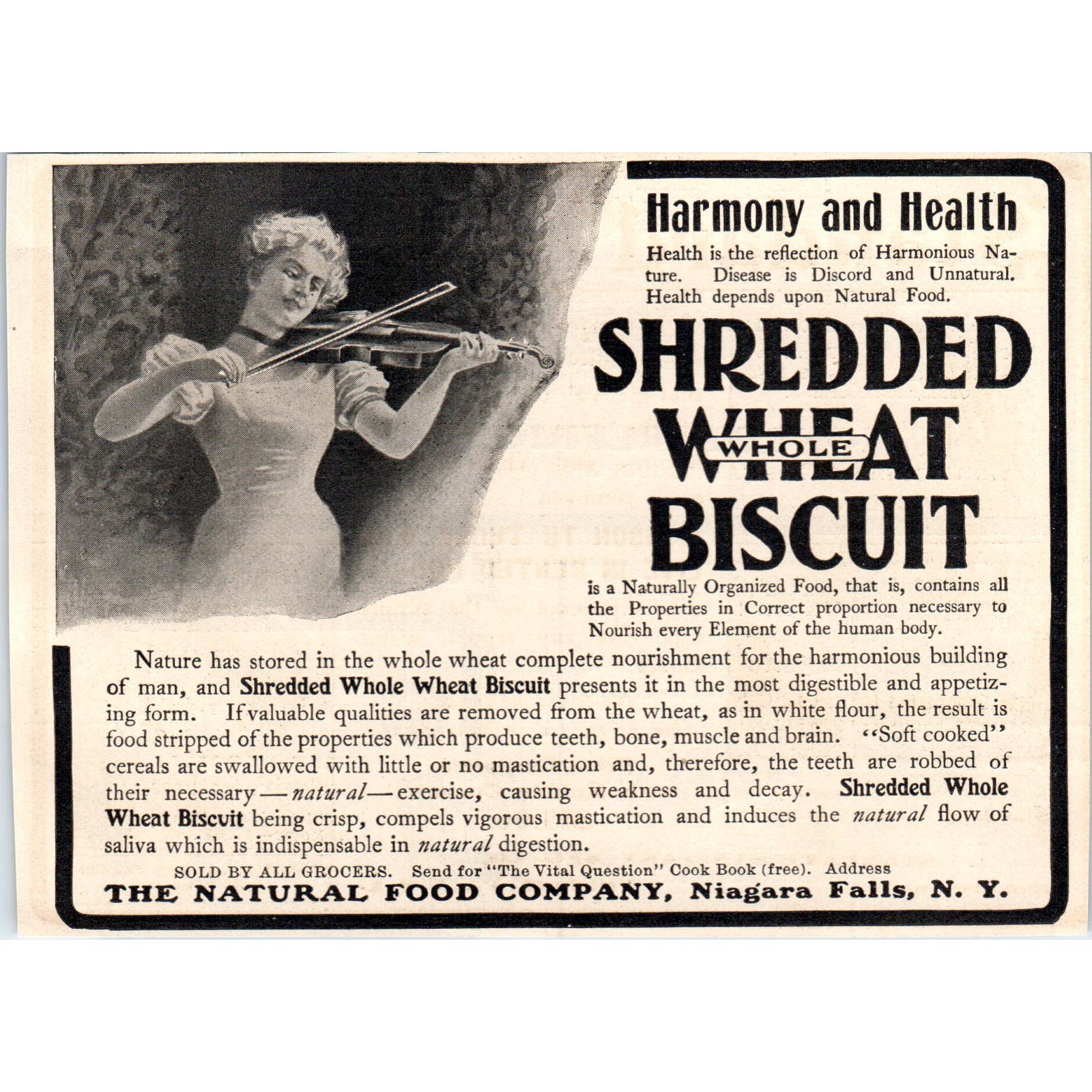 Shredded Wheat Biscuit Violin c1905 Original Magazine Advertisement AE7-A1
