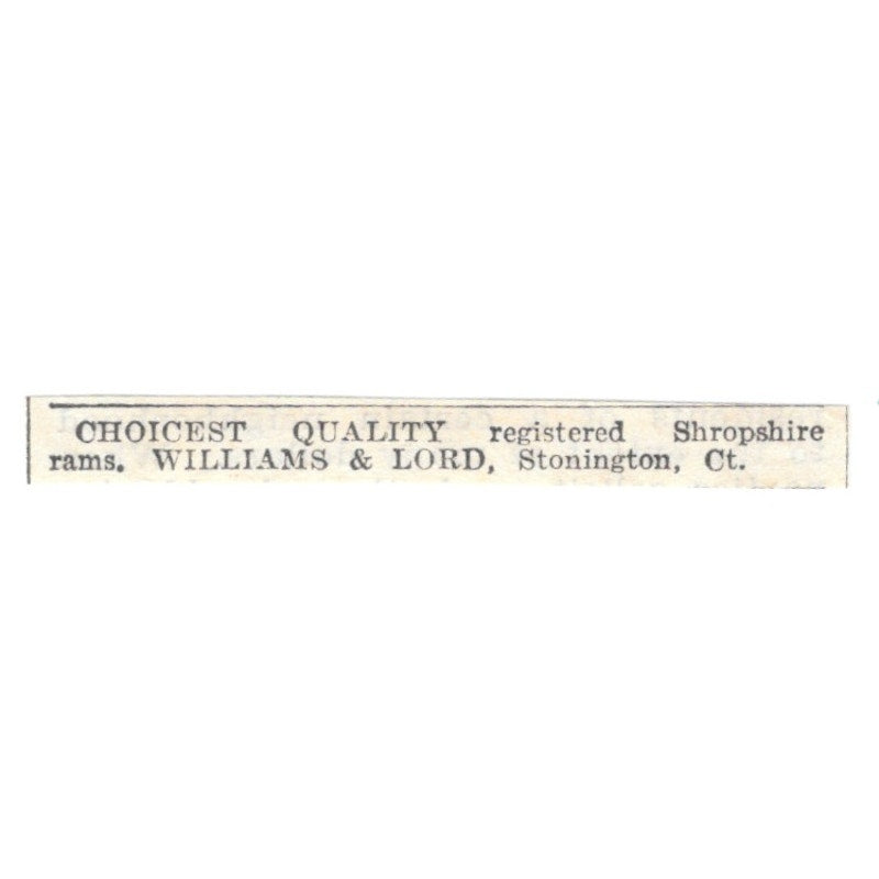 Shropshire Rams Williams & Lord Stonington CT 1905 Magazine Ad AF1-NES1