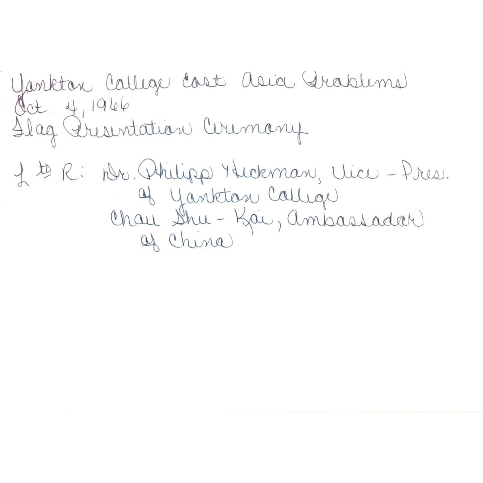 Shu-Kai Chow Chinese Ambassador Yankton College Flag Ceremony 1966 Photo TK1-P5