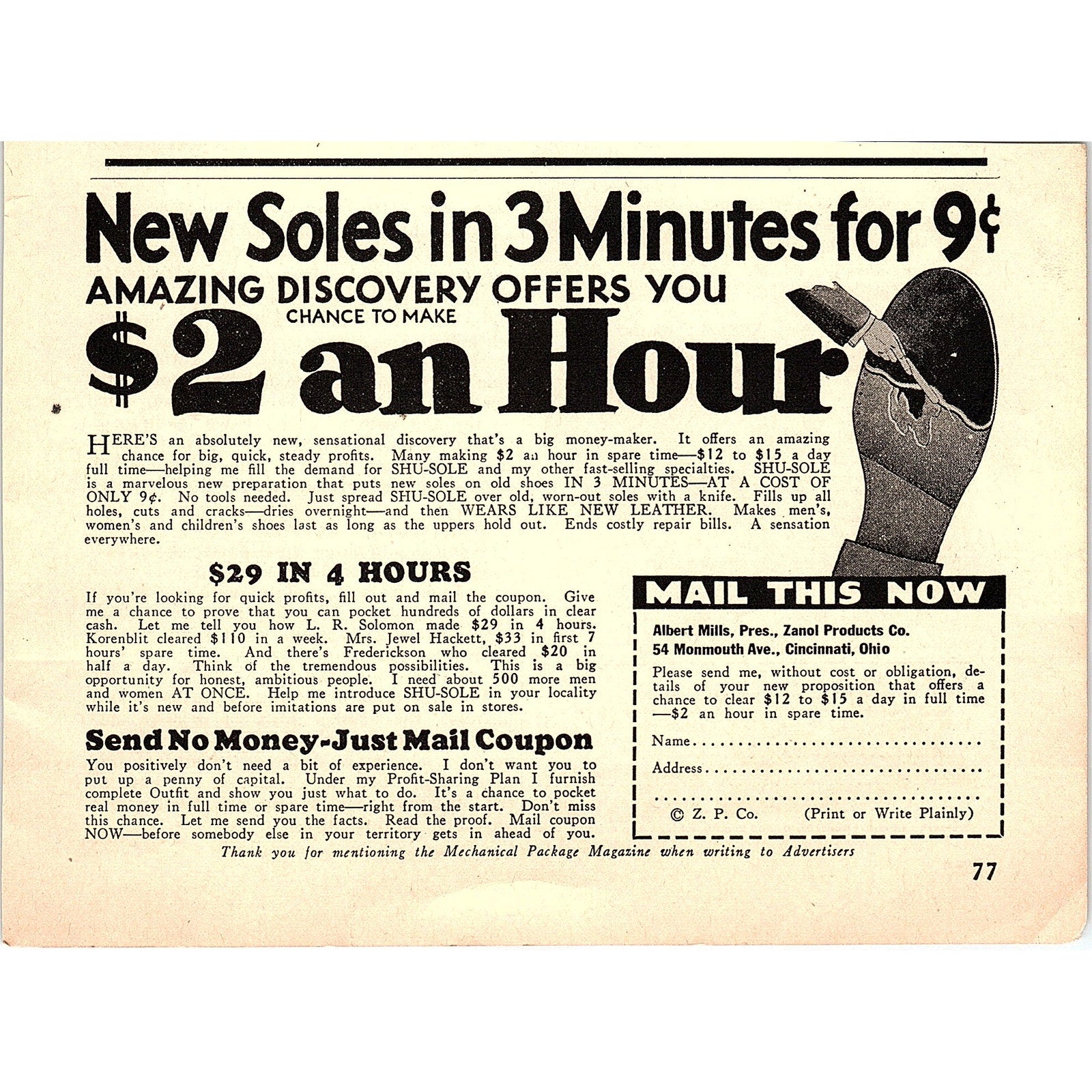 Shu-Sole Shoe Sole Repair Albert Mills Zanol Product Co Cincinnati 1931 Ad AG1-14