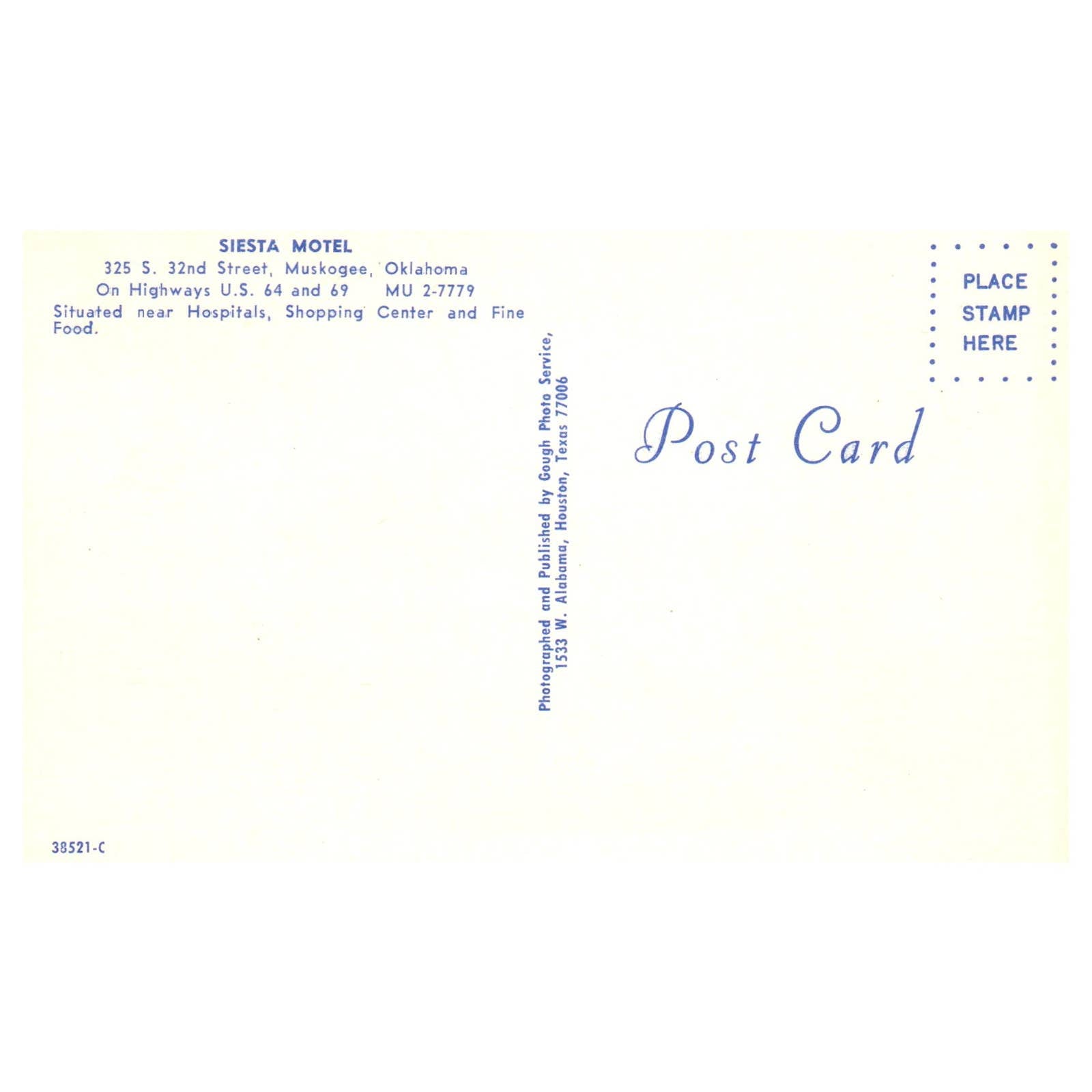 Siesta Motel Muskogee Oklahoma - Postcard TJ8-2