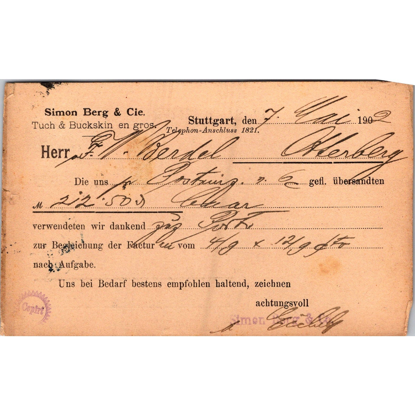 Simon Berge Tuck & Buckskin Stuttgart 1902 German Reich Postcard TE2-GRP