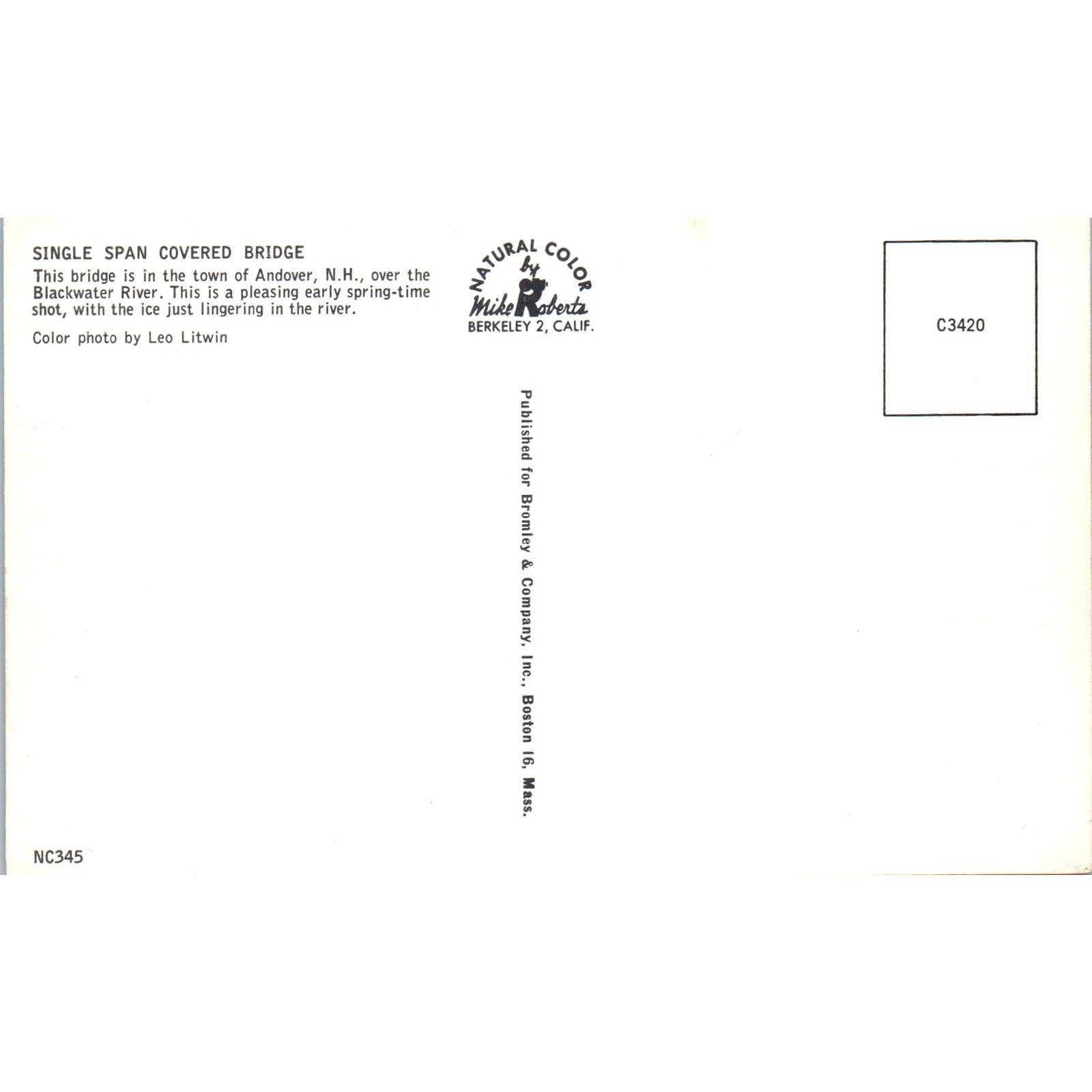 Single Span Bridge Andover New Hampshire Covered Bridge Postcard PB12
