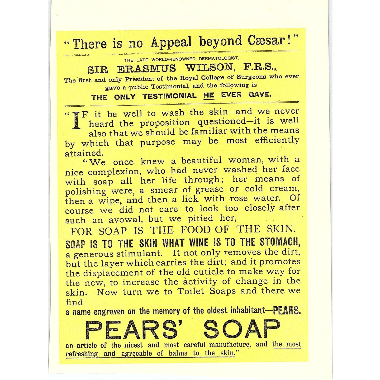 Sir Erasmus Wilson Pears' Soap Testimonial Antique Magazine Ad 5x8 V4
