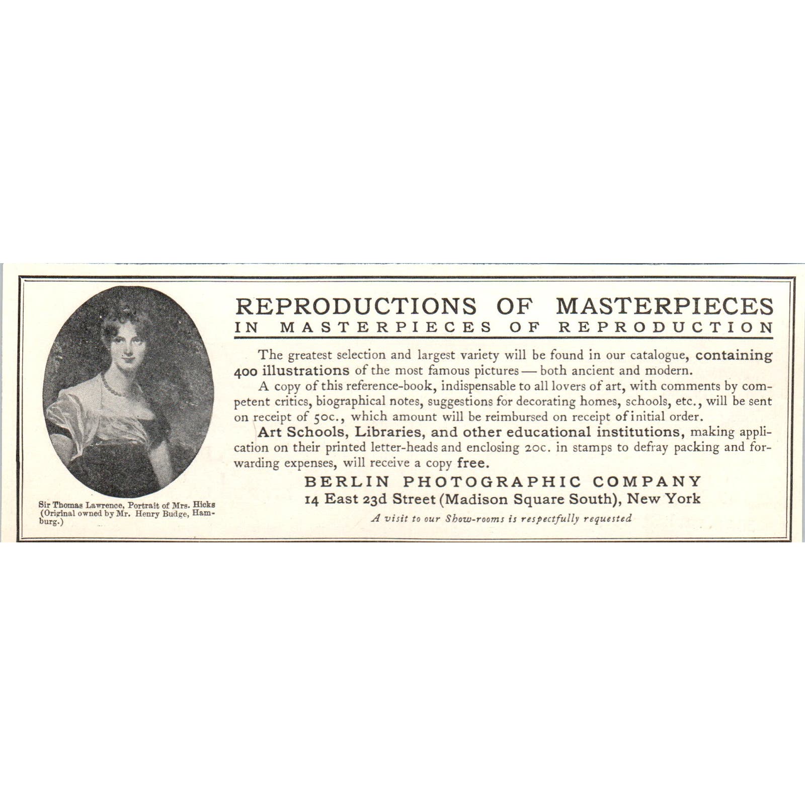 Sir Thomas Lawrence Repro Berlin Photographic Co NY c1905 Victorian Ad AE9-MA1